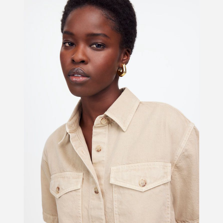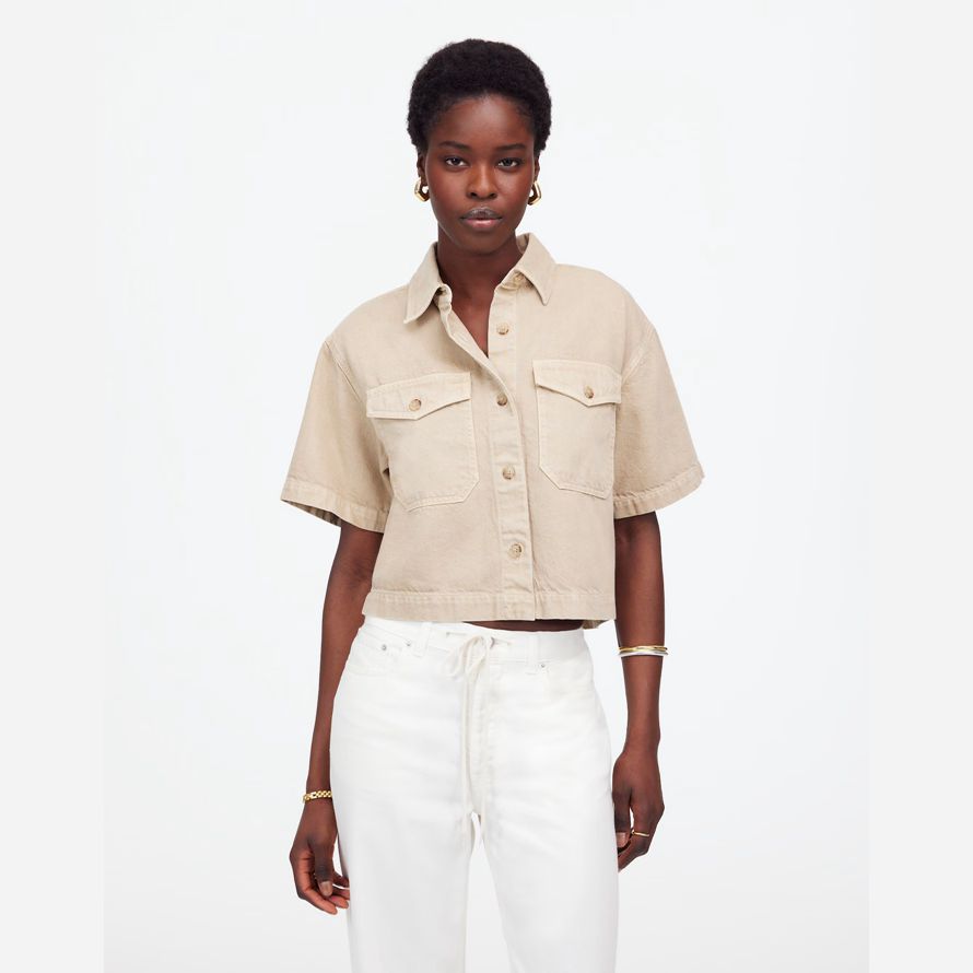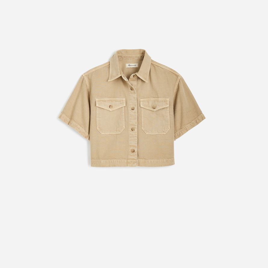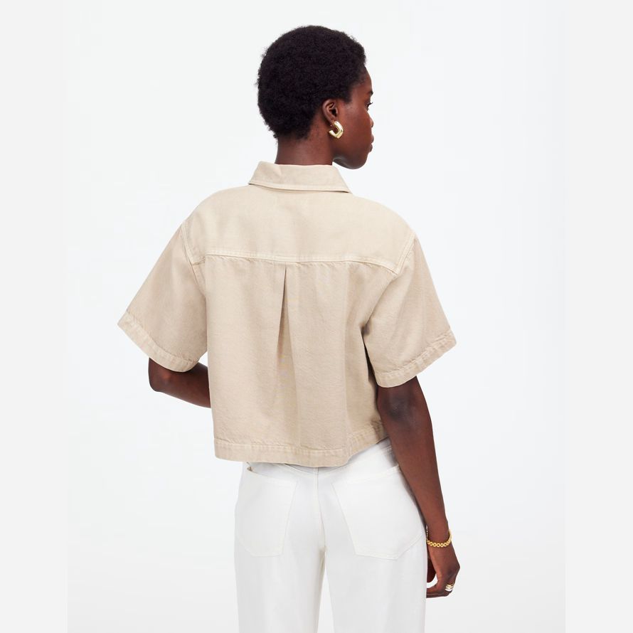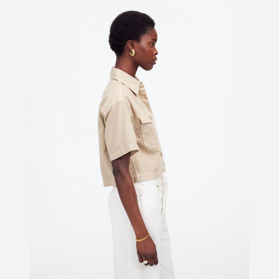 Kaki Madewell Boxy-Culture De Bouton-Up Womens Shirts