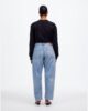 baril-leg jeans ont des fléchettes sur les genoux pour un semi-incurvée look. Conçu pour une forme de sablier (voir: plus étroit à la taille avec une bande profilée, une longue montée et un peu d’espace supplémentaire au niveau des hanches et des cuisses).