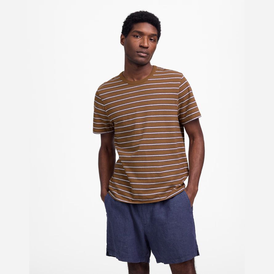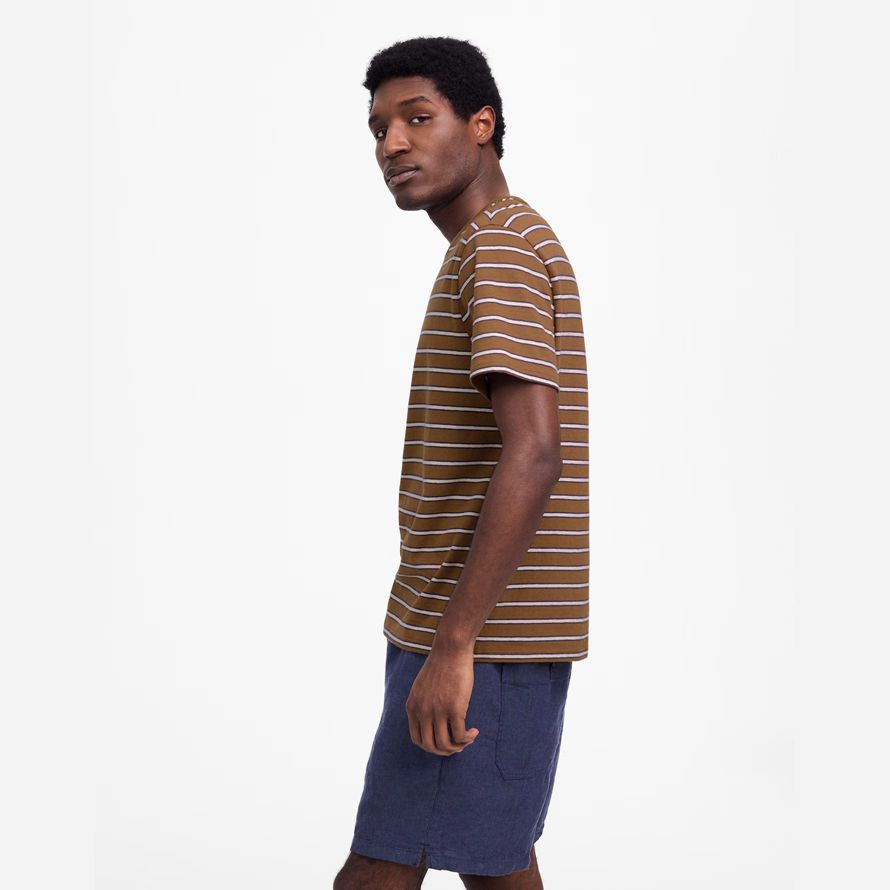 Madewell Allday Coton, Mélange De Lin Mens T-Shirts Marron / Blanc