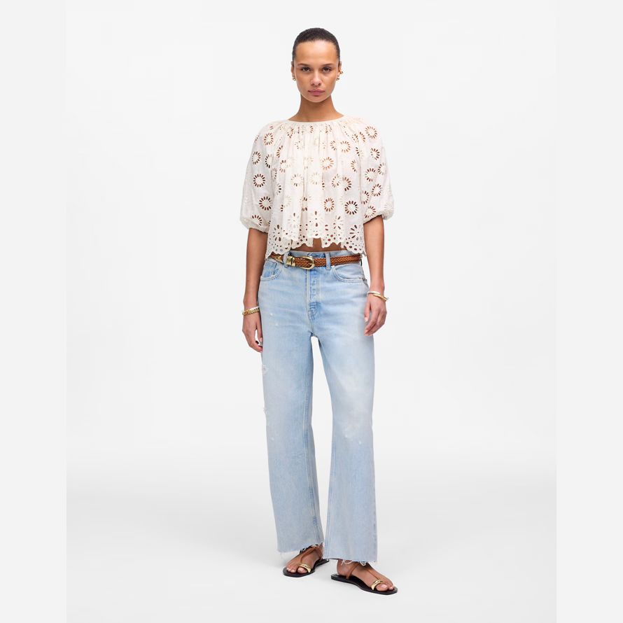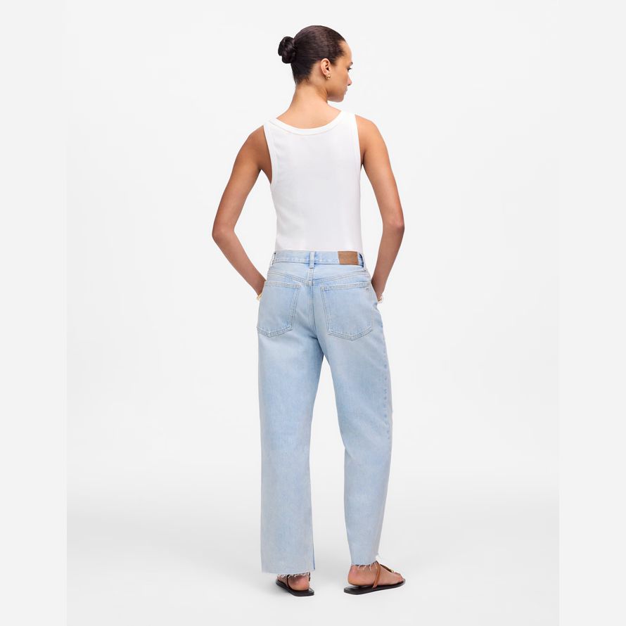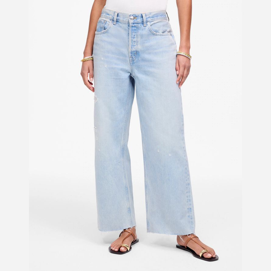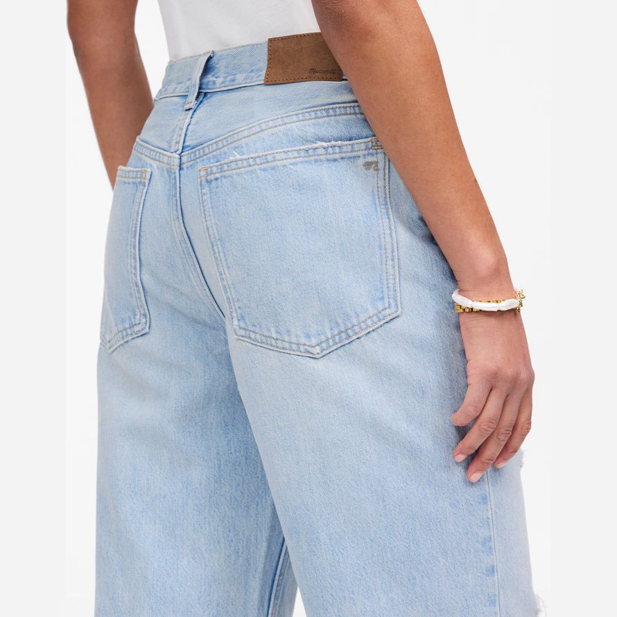maintenant, dans une longueur rognée. Conçu pour être porté bas sur les hanches, ce détendue paire a un baggy large de la jambe. En famille, notre lumière de lavage avec une parfaite portées sentir.