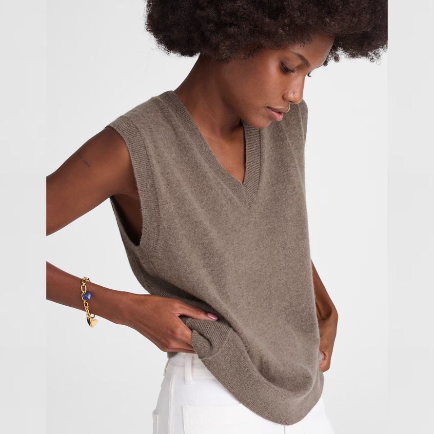 Madewell Cachemire Col En V Sans Manches Femmes Pull Marron Foncé