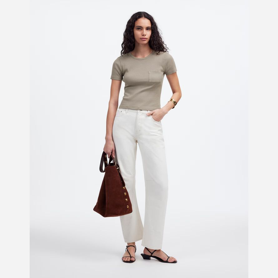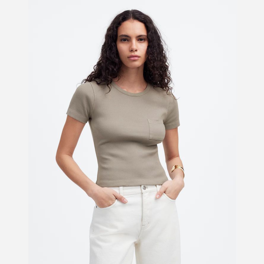Madewell Côtelée Encolure Ras Du Cou Poche Womens T-Shirts Gris