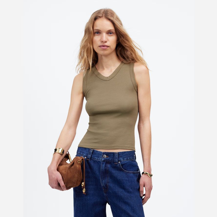 un de-le-moment sentir. Il a un corps écrémage ajustement, garniture de détails et est fabriqué à partir de notre doux tissu côtelé. Paire avec faible hauteur pantalon denim pour un endroit frais, sans effort de look.