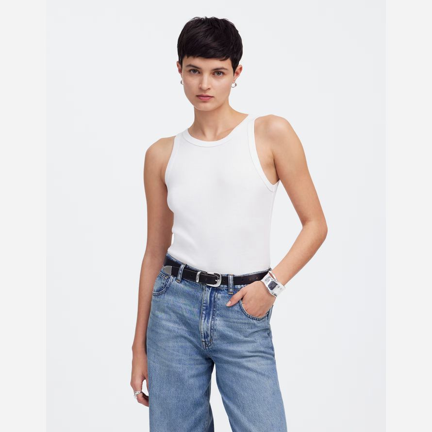 Madewell De Régénération De Coton Essentielle Haute-Cou Womens Réservoir Blanc