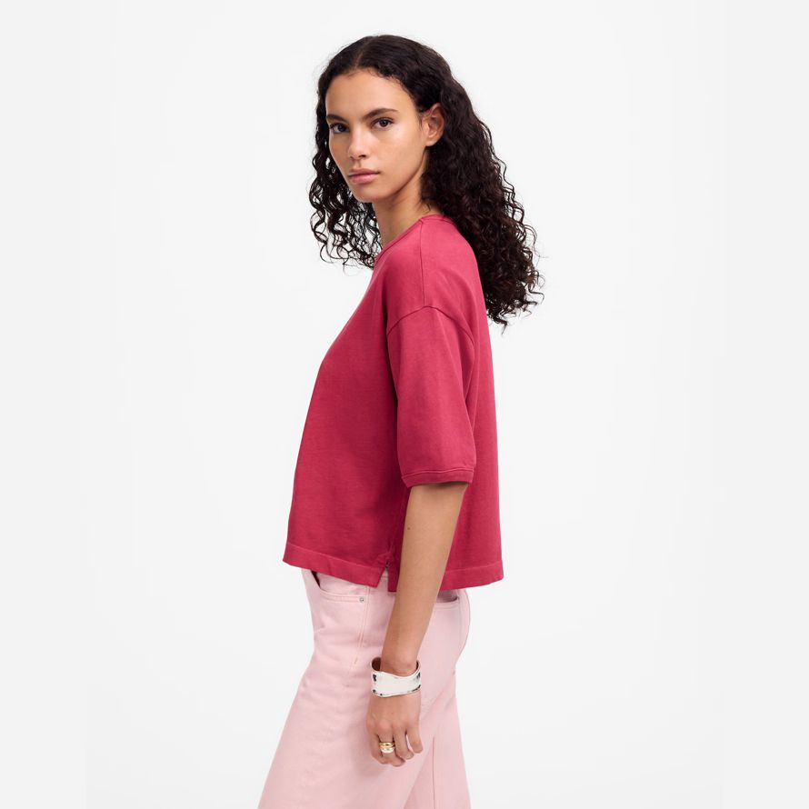 détendu baisse les épaules et tissé de détails sur les coutures latérales. Ses cool boxy ajustement ajoute un petit quelque chose de spécial à votre té de rotation.