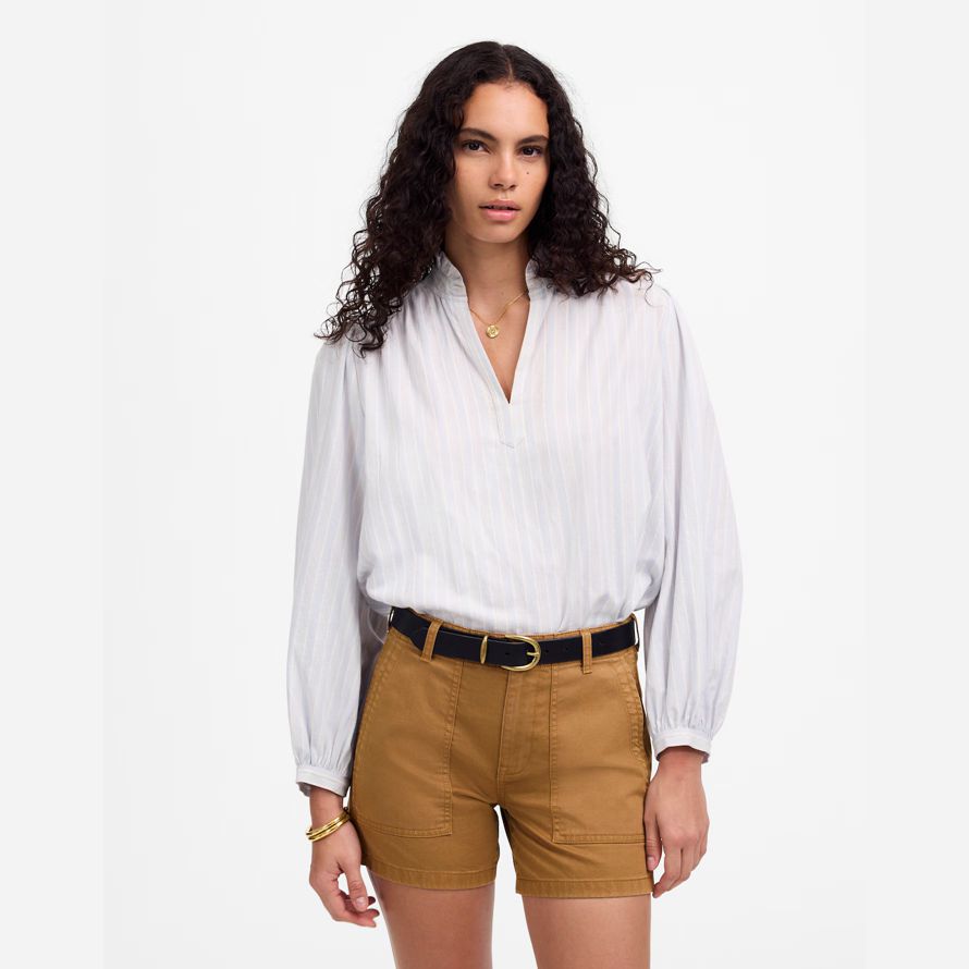 haut-lieu de l’utilitaire de shorts disposent d’avant poches plaquées, poches plaquées au dos et une à mi-longueur entrejambe. Teinte pour une durée de look, ils sont fabriqués à partir de coton doux twill avec une déjà rompu de sentir.