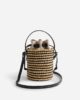 le sac dispose d’un tissé à la main en paille extérieur, une toile poche intérieure avec une fermeture à cordon et amovible bandoulière sangle. Il est parfaitement dimensionné pour tenir essentials comme votre téléphone, cartes, clés et brillant à lèvres.