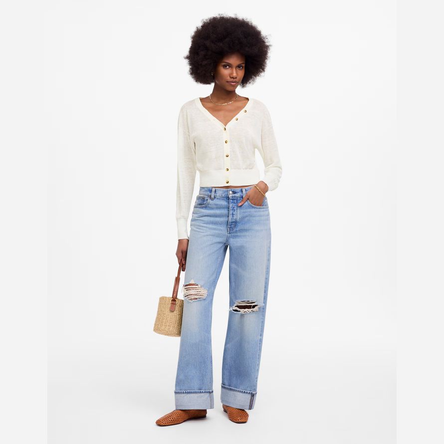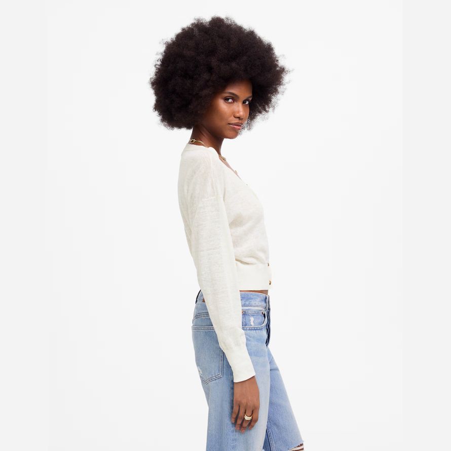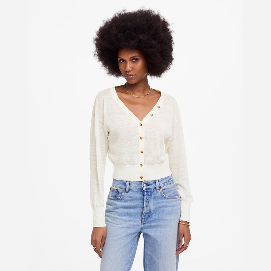 Fabriqué à partir d’un frais mélange de lin, ce rétrécissement du cardigan…
