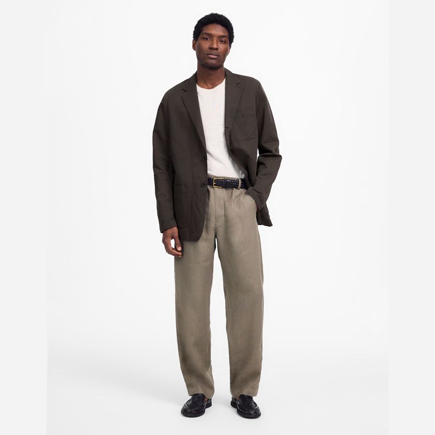 dispose d’un vêtement de travail-conception inspirée avec ses trois-poche silhouette, deux poches intérieures et une nonvented dos. Les correspondances avec le Pantalon Plissé en Coton, Mélange de Lin.