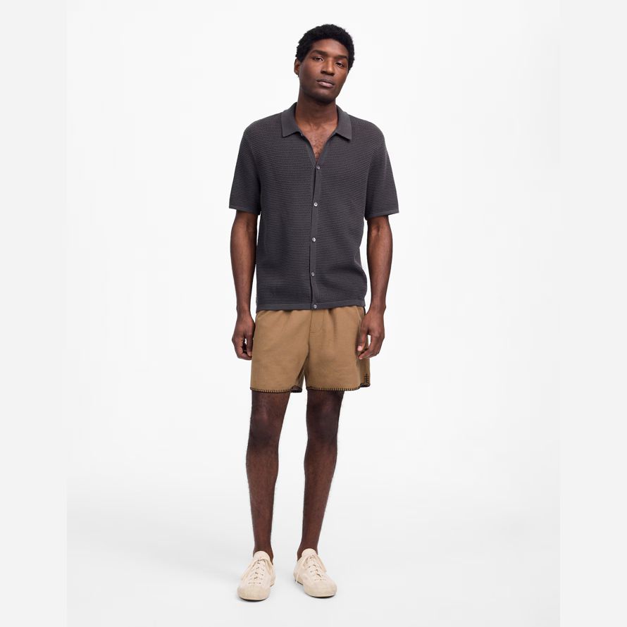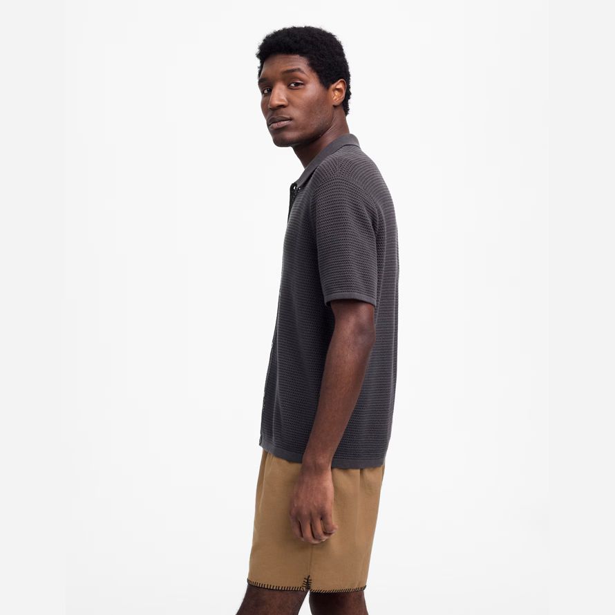 Madewell Ouvert De Couture De Bouton-Up Pull Mens Polo Gris Foncé