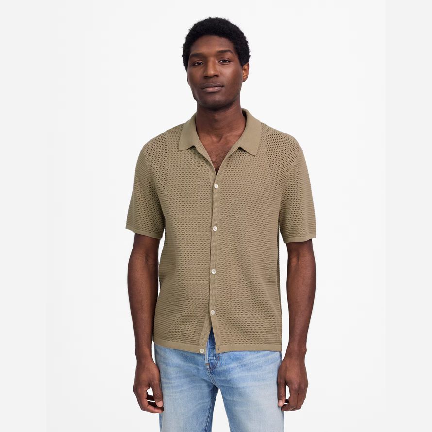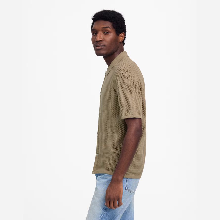 Madewell Ouvert De Couture De Bouton-Up Pull Polo Mens Olive