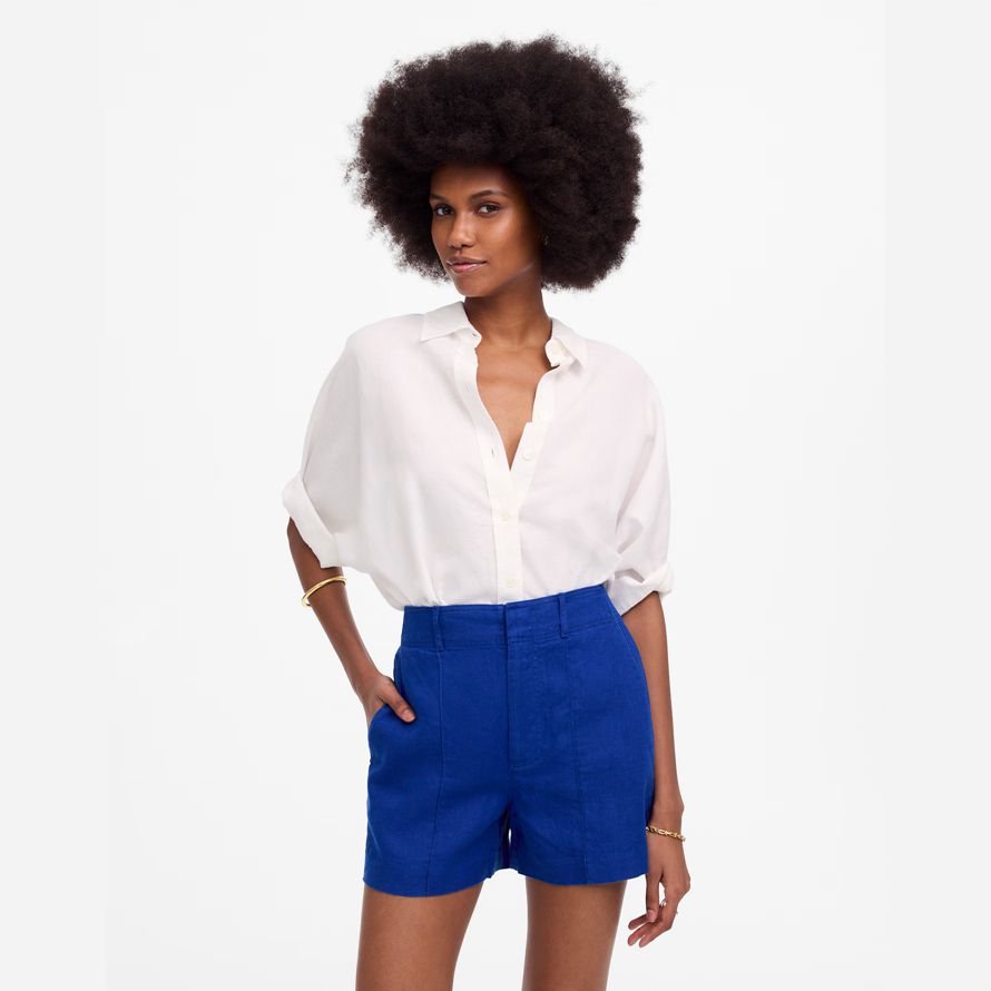 pantalons de style shorts ont une pintucked face, oblique poches avant et dos poches passepoilées. Jeter sur et dotés d’une belle chemise pour un look intemporel. Conçu à partir de notre favori léger 100% lin.