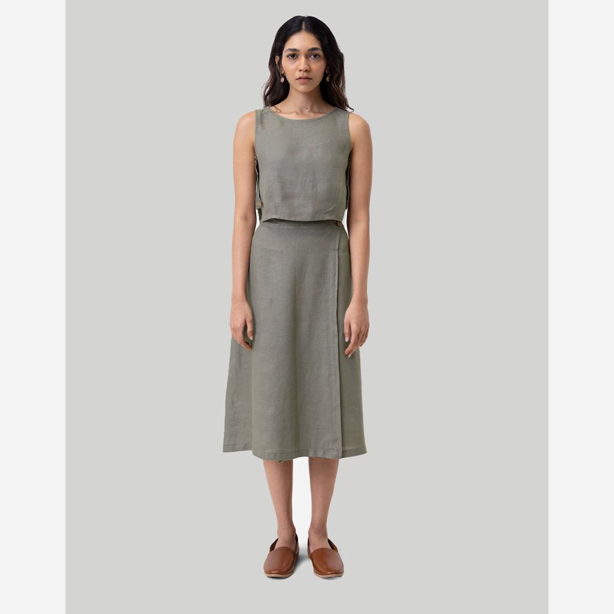 produit de manière durable les vêtements qui peuvent durer toute une vie. Ce midi jupe dispose d’un chevauchement de l’avant avec des boutons sur le côté, en ajoutant une touche « old school » à votre garde-robe.