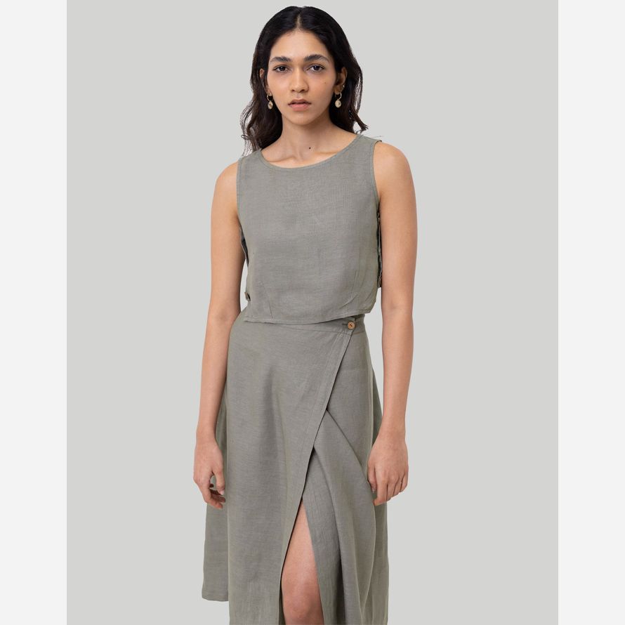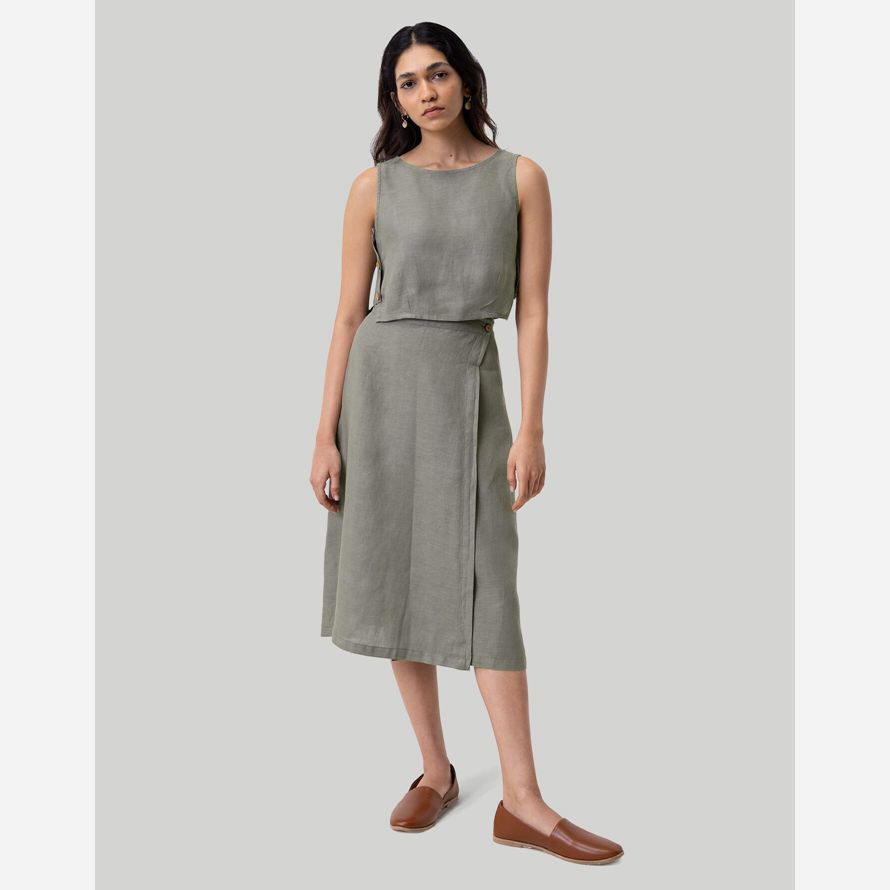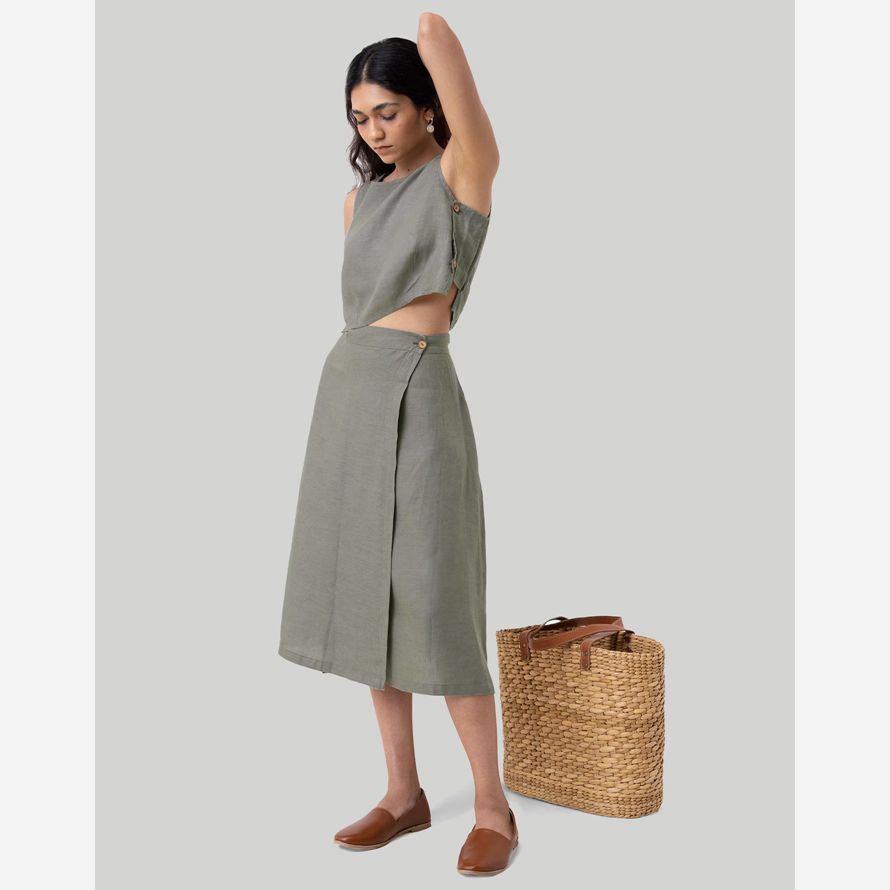 Chevauchement sur le devant, détail Bouton sur le côté, longueur Midi.L’importation.LinenWash dans de l’eau froide ou nettoyage à sec uniquement, Ne pas tremper l’eau de javel ou de l’essorage, le séchage à l’ombre, de Fer à l’intérieur sur le peu de chaleur