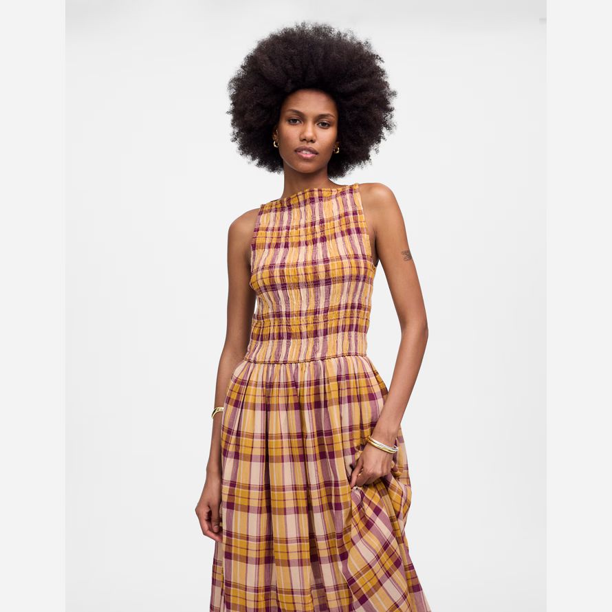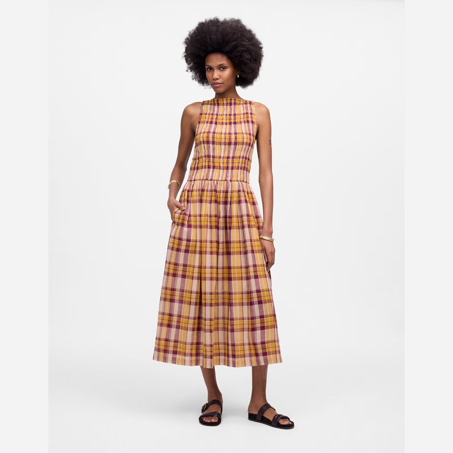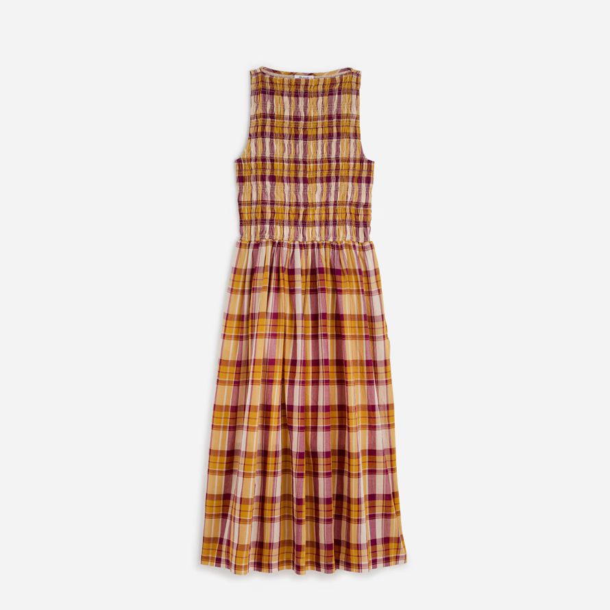 smockée et d’un corsage à haute encolure bateau offrant une fois moderne et intemporel. Entièrement doublée et conçu avec des poches sur les côtés, c’est la robe parfaite pour sans effort, avec style tous les jours.