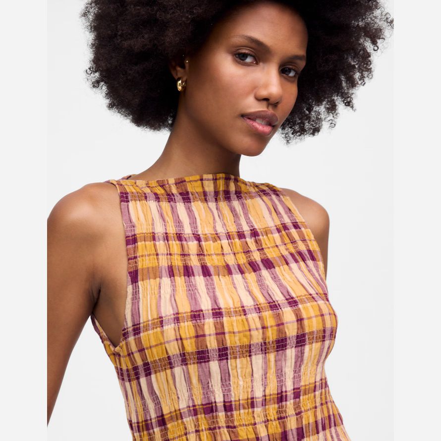 Artisanale de carreaux seersucker, cette robe maxi est entièrement…