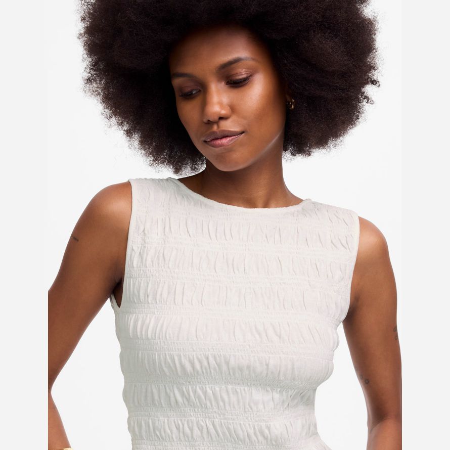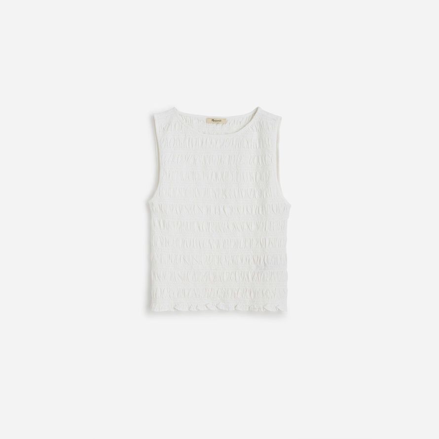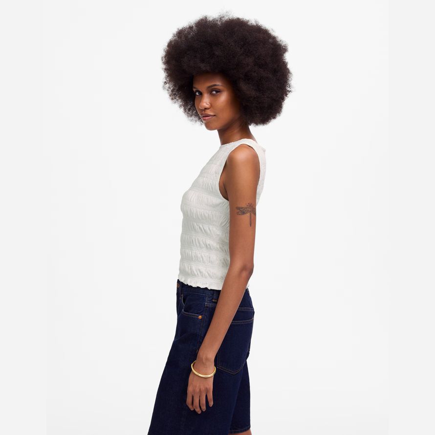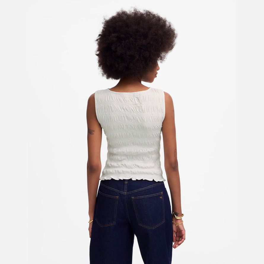 le réservoir est entièrement smockée et fini avec un ourlet à volants. Conçu pour épouser le corps, il élève n’importe quel lookラsurtout couplé avec vos jeans préférés.