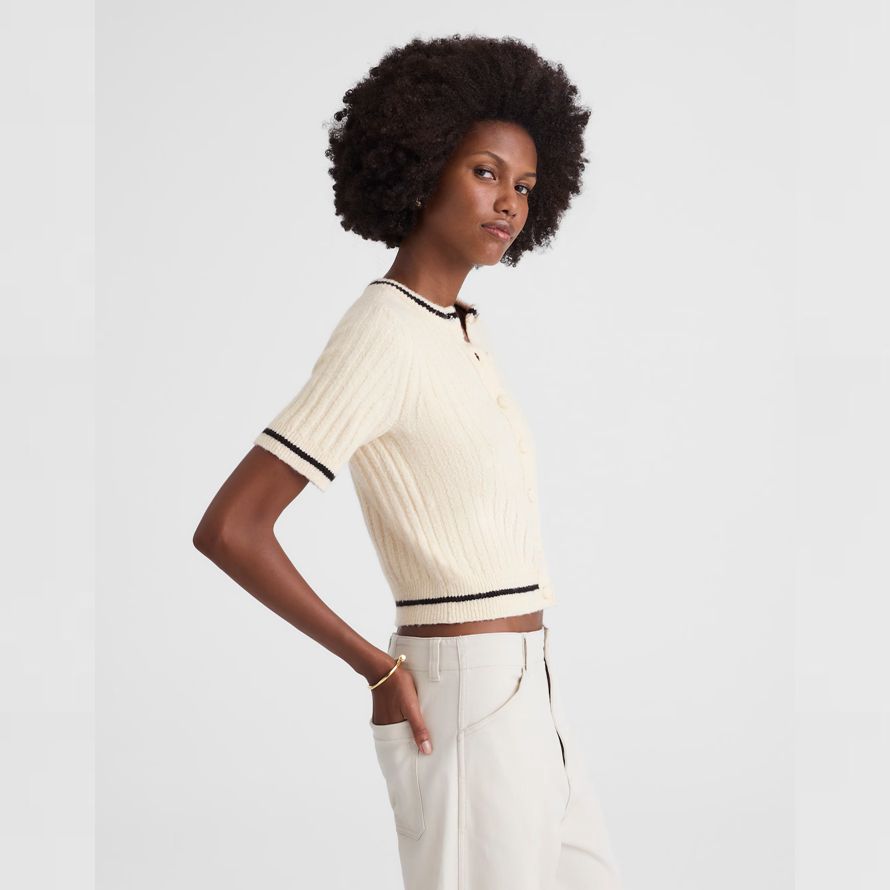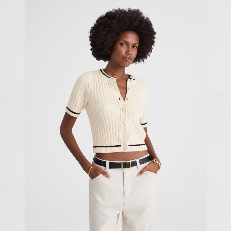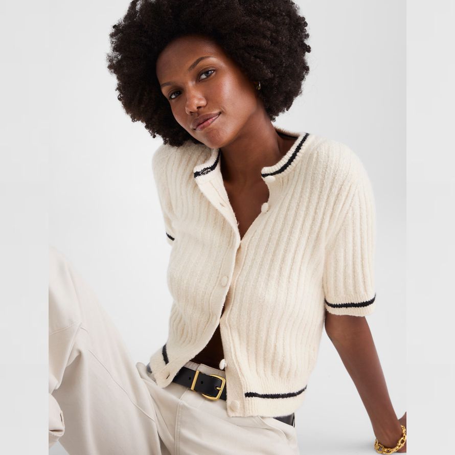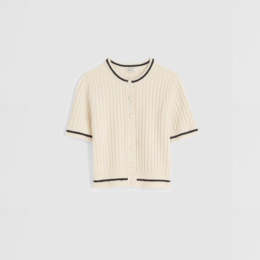 Conçu avec un flatteur slim fit, ce côtelée en mélange de coton cardigan possède des manches manches et un split ras du cou. De le coupler avec votre jean préféré.