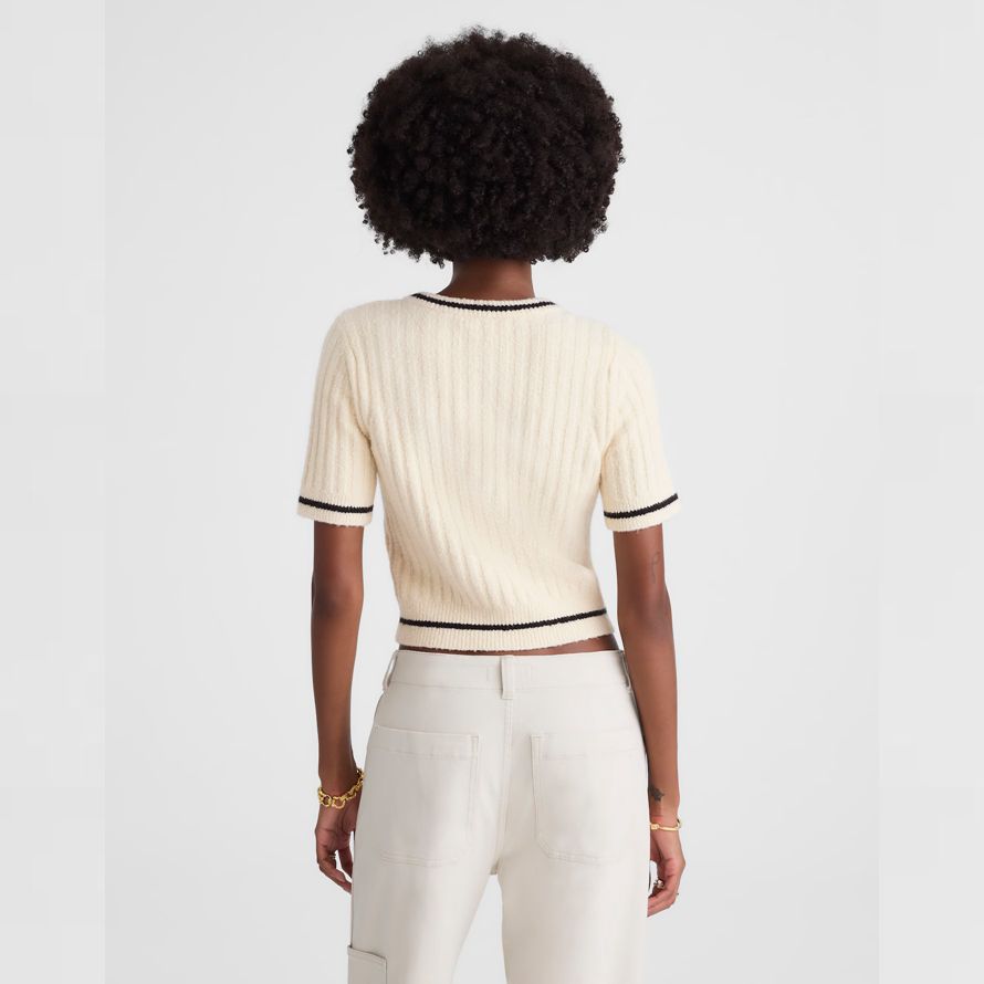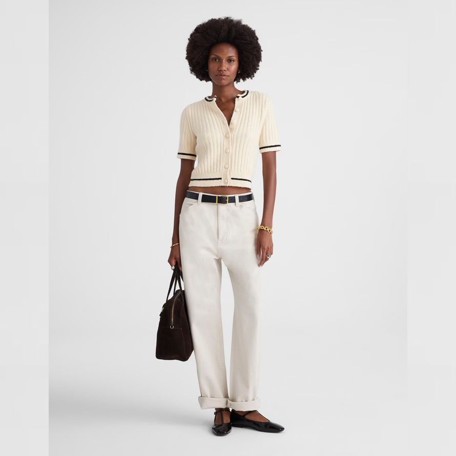 Coupe décontractée.Longueur: conçu pour frapper entre le nombril et le haut de la hanche.La longueur du corps de haut point de l’épaule: 20 1/2″.55% coton/33% polyamide/10% laine mérinos/2% élasthanne.Rib: 52% coton/36% polyamide/9% laine mérinos/3% élasthanne.Lavez à la main.Importés.