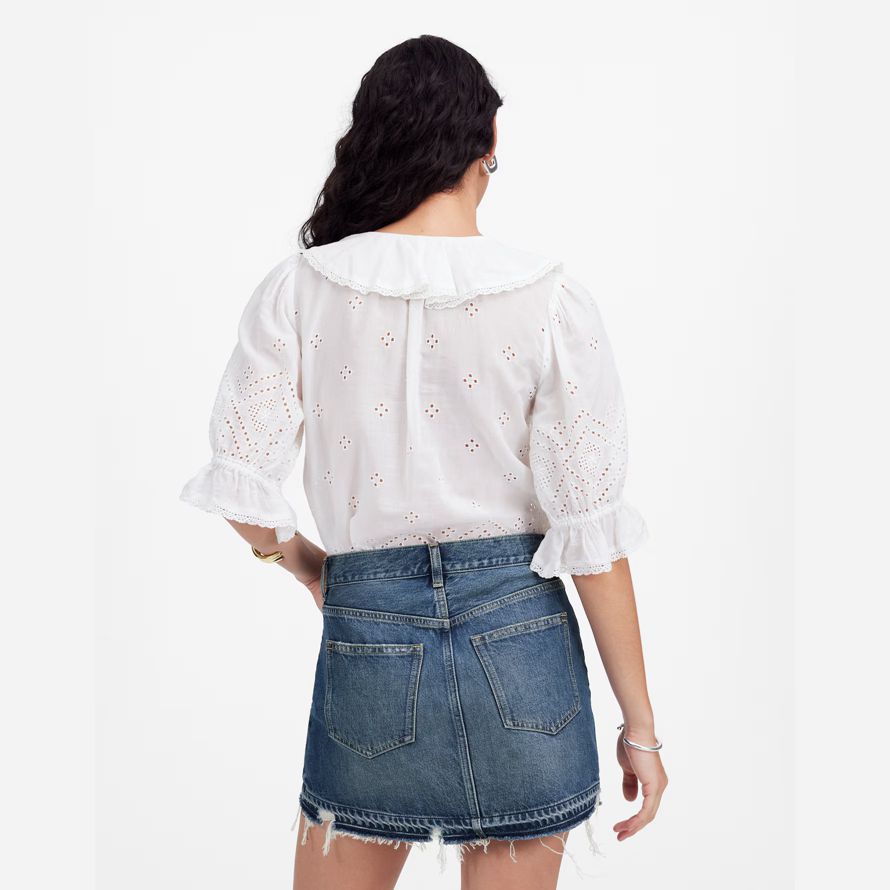 ce classique à cinq poches mini jupe ajoute une touche edgy à votre garde-robe grâce à une détresse laissez-bas ourlet. Paire avec nos veste assortie pour compléter le look.