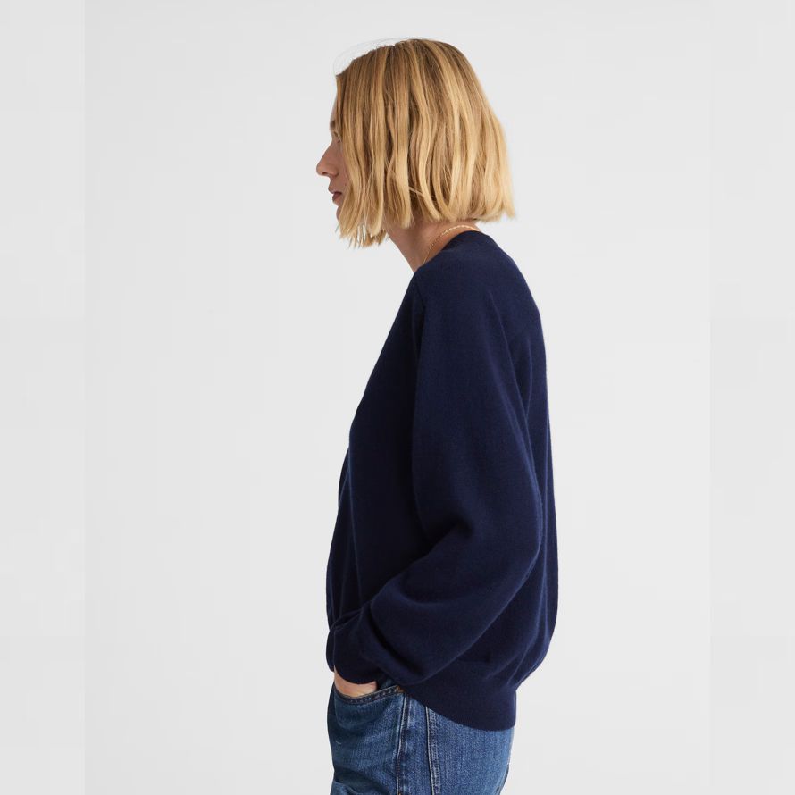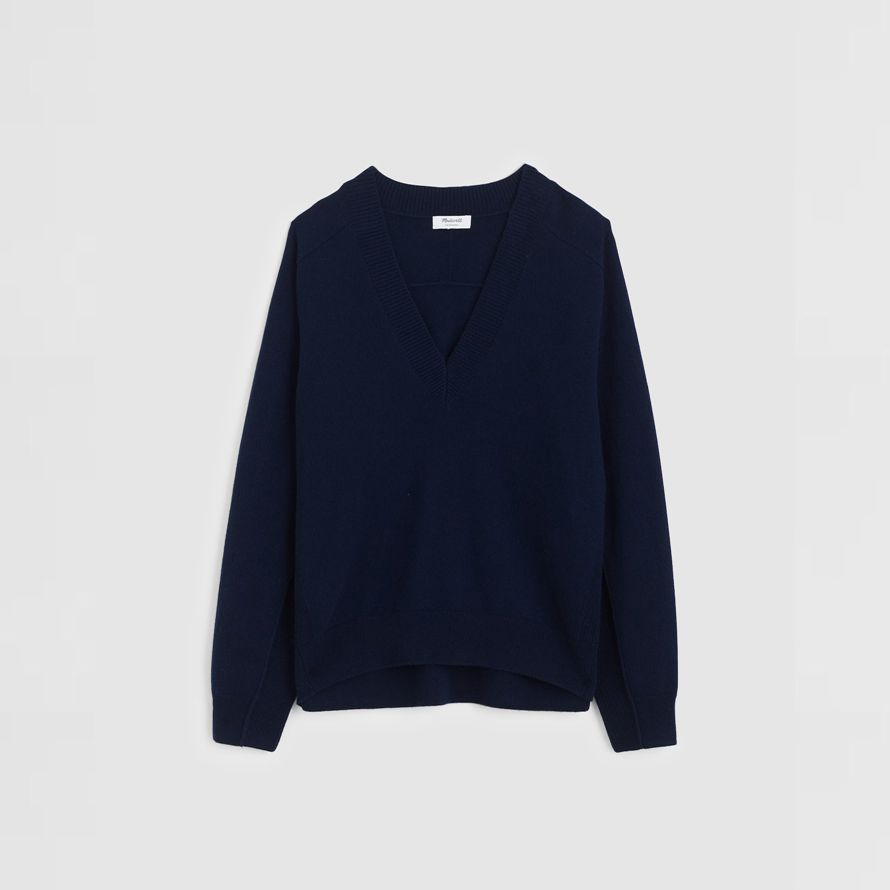 Un confortable, rayé, col en V pull faite de luxe (et de source responsable) 100% cachemire. Sa coupe décontractée et lâcha les épaules de faire de cette couche parfait pour les jours froids à venir.