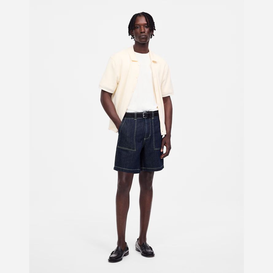 question de la norme pantalon, ces denim shorts disposent de la même rectangulaire poches avant et une habillés, plus la hausse.