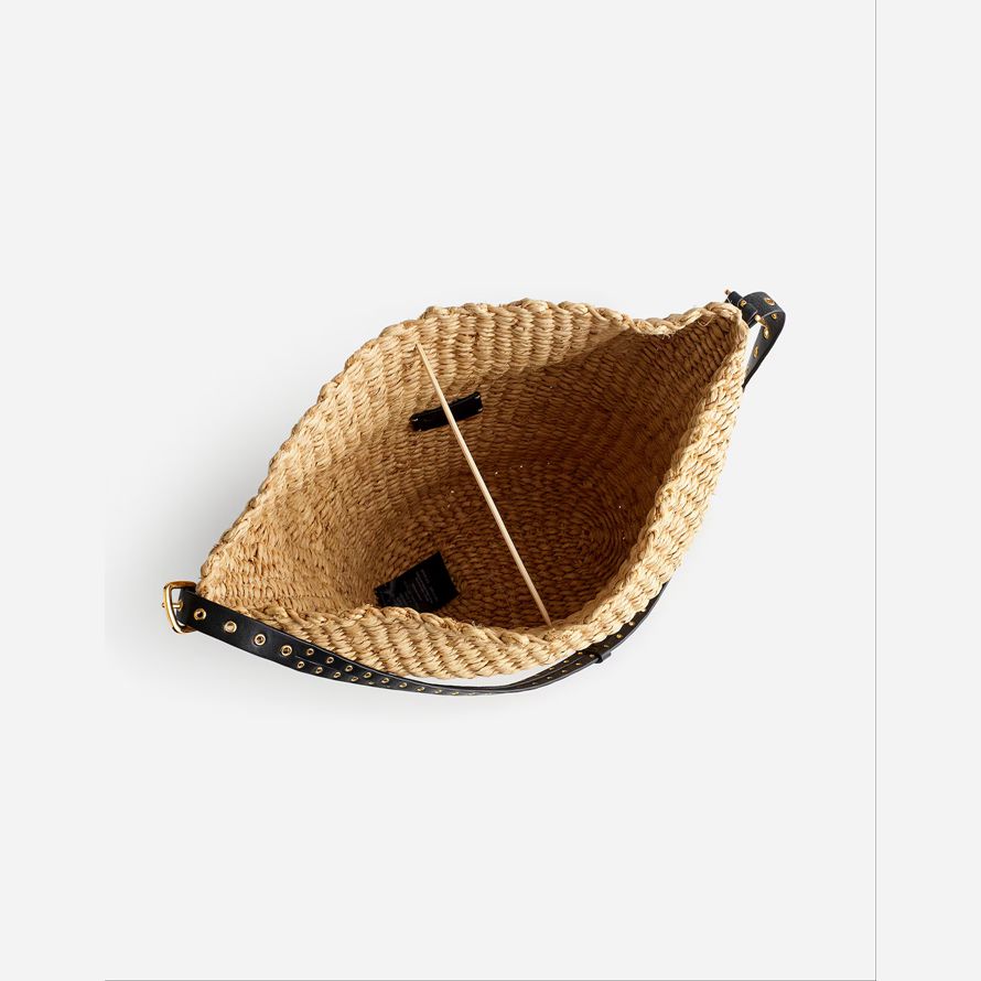 Un tissé à la main en papier de la paille sac avec un bord, grâce à un…