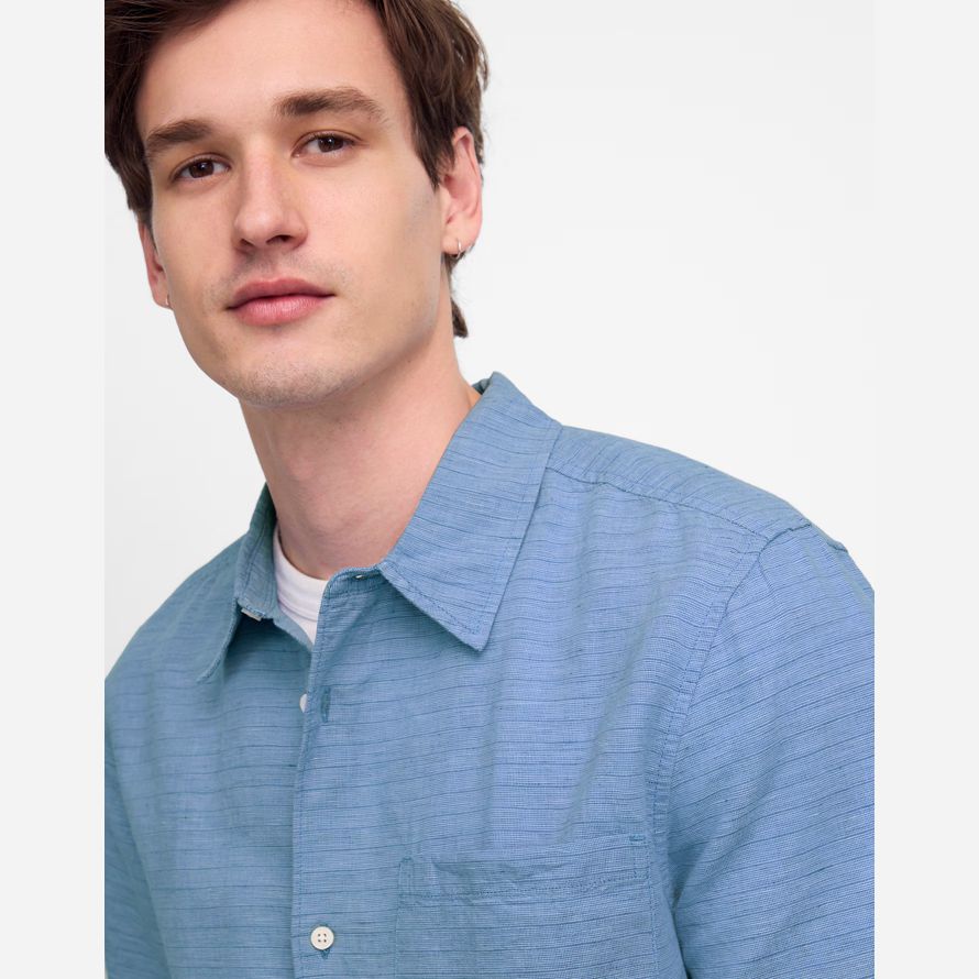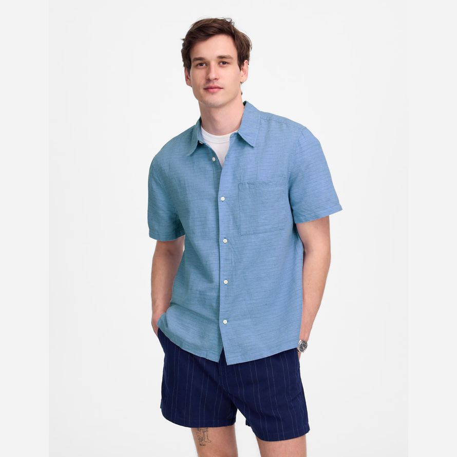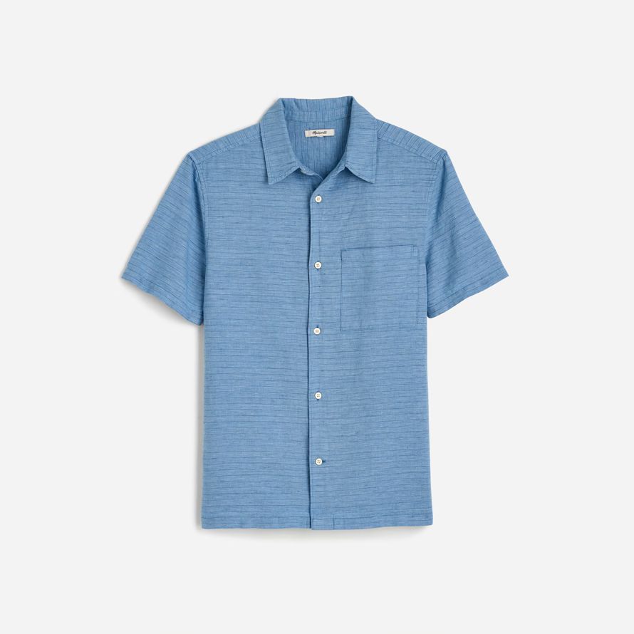 Mens Madewell Bouton De Courte Coton, Mélange De Lin Shirts Bleu
