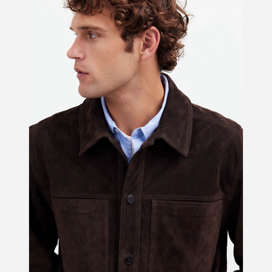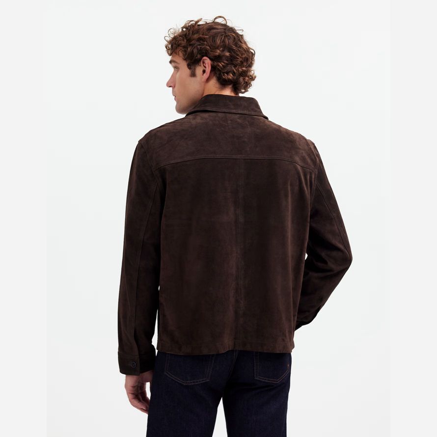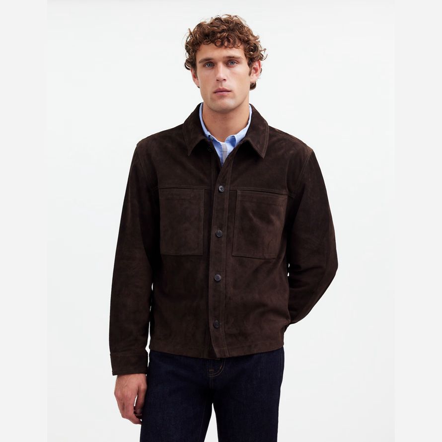 Mens Madewell Suede Boxy Shirt Veste En Cuir Marron Foncé