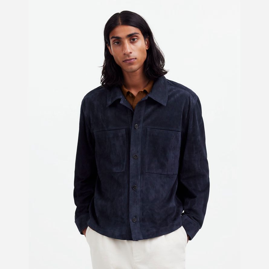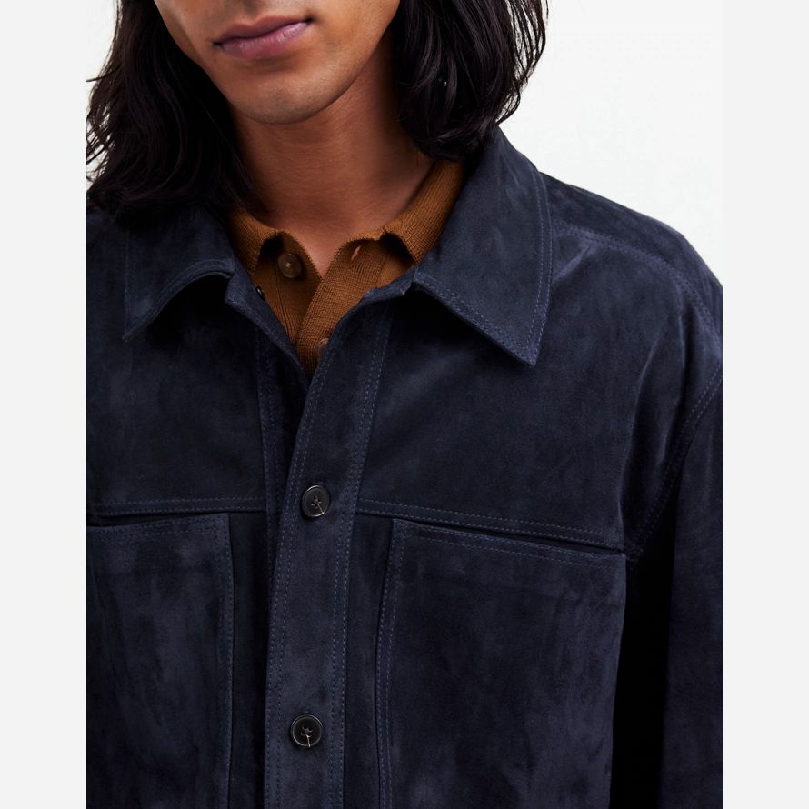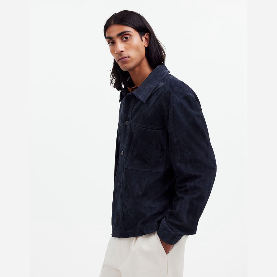 Navy Mens Madewell Suede Boxy Shirt Veste En Cuir