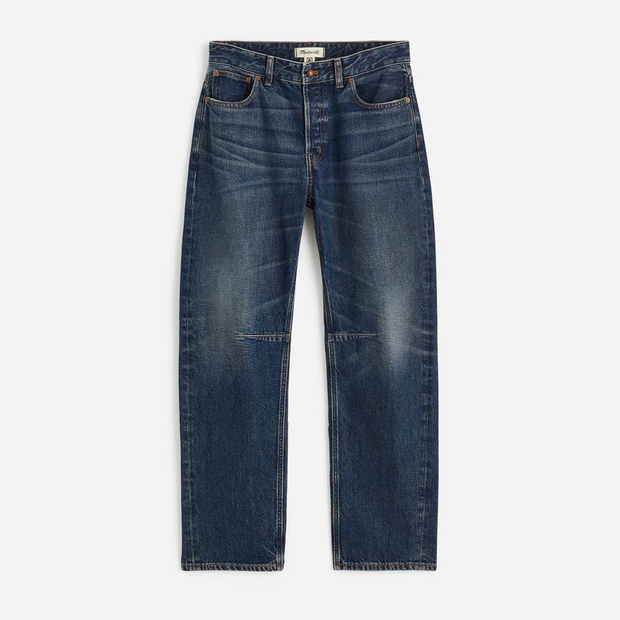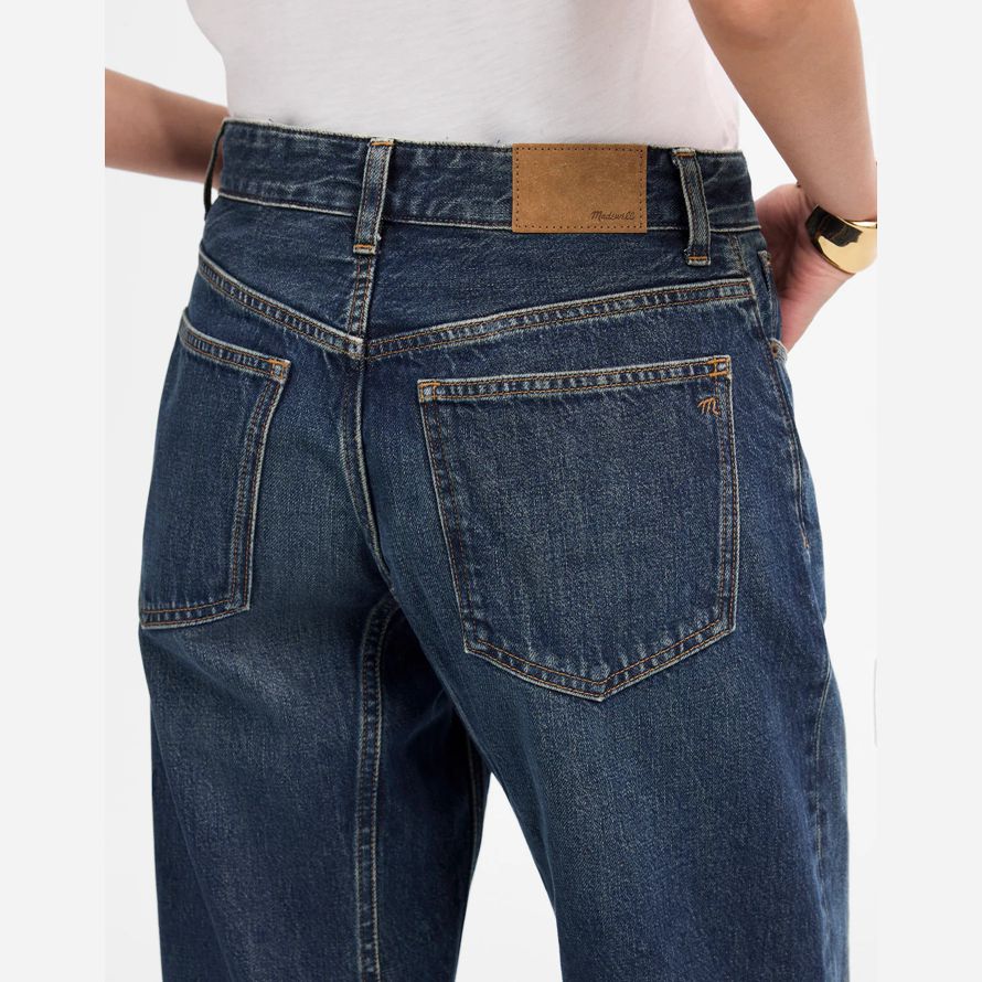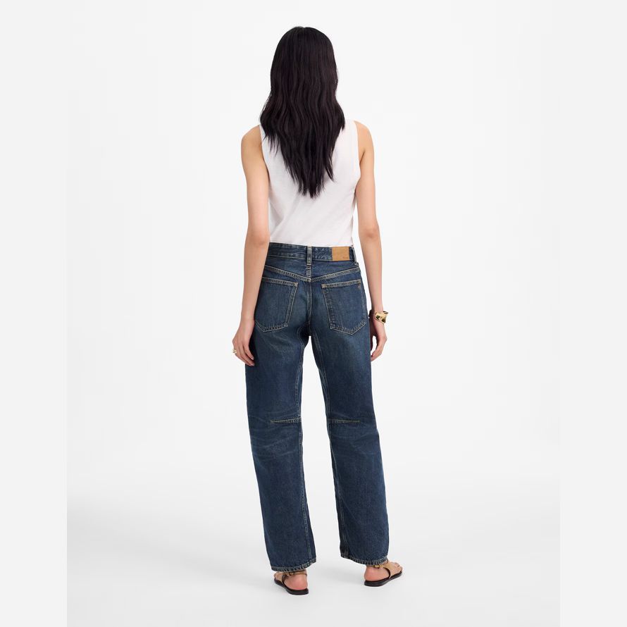 baril-leg jeans ont des fléchettes sur les genoux pour un semi-incurvée look. De Plus, si vous aimez ce style denim, de l’essayer dans nos pantalons.