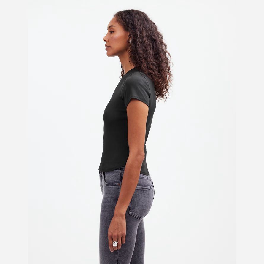 Slim fit.Longueur: conçu pour frapper entre le nombril et le haut de la hanche.La longueur du corps de haut point de l’épaule: 21 7/8″.95% coton/5% élasthanne.Laver à la Machine.Importés.