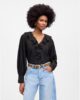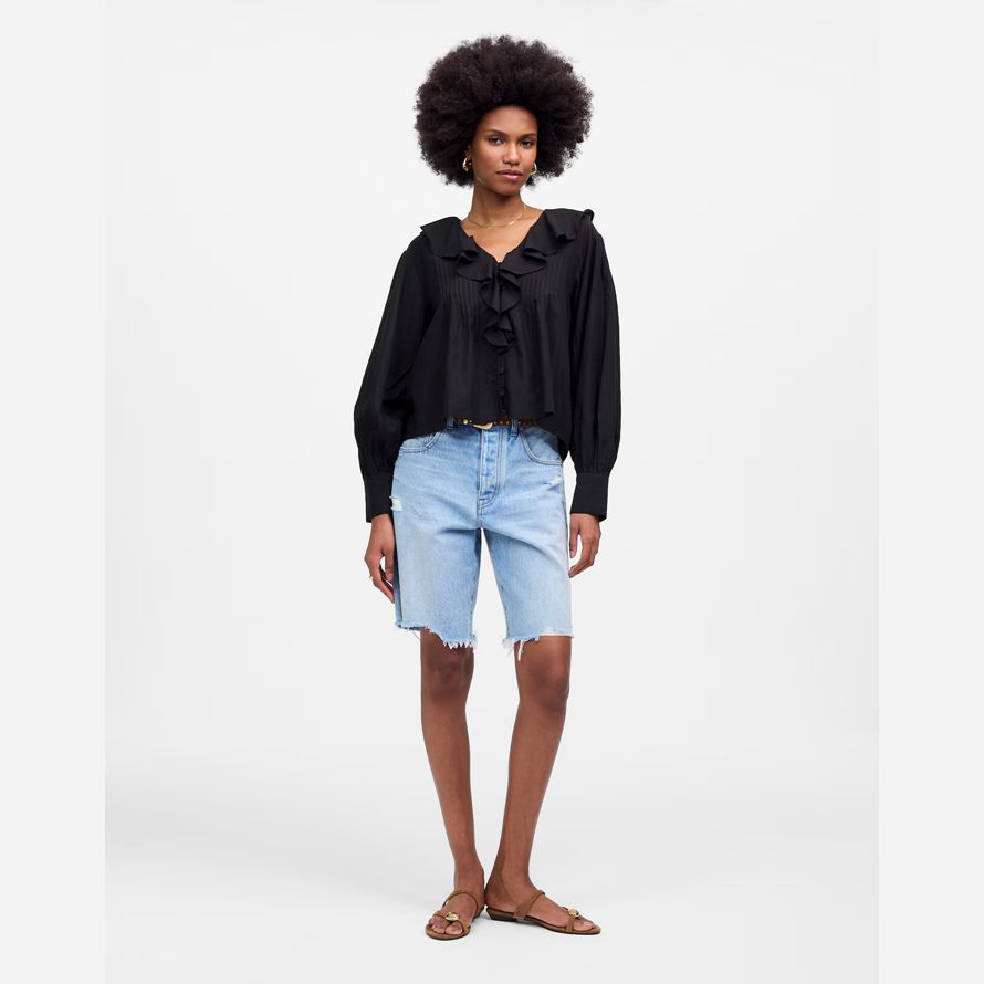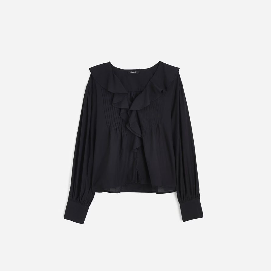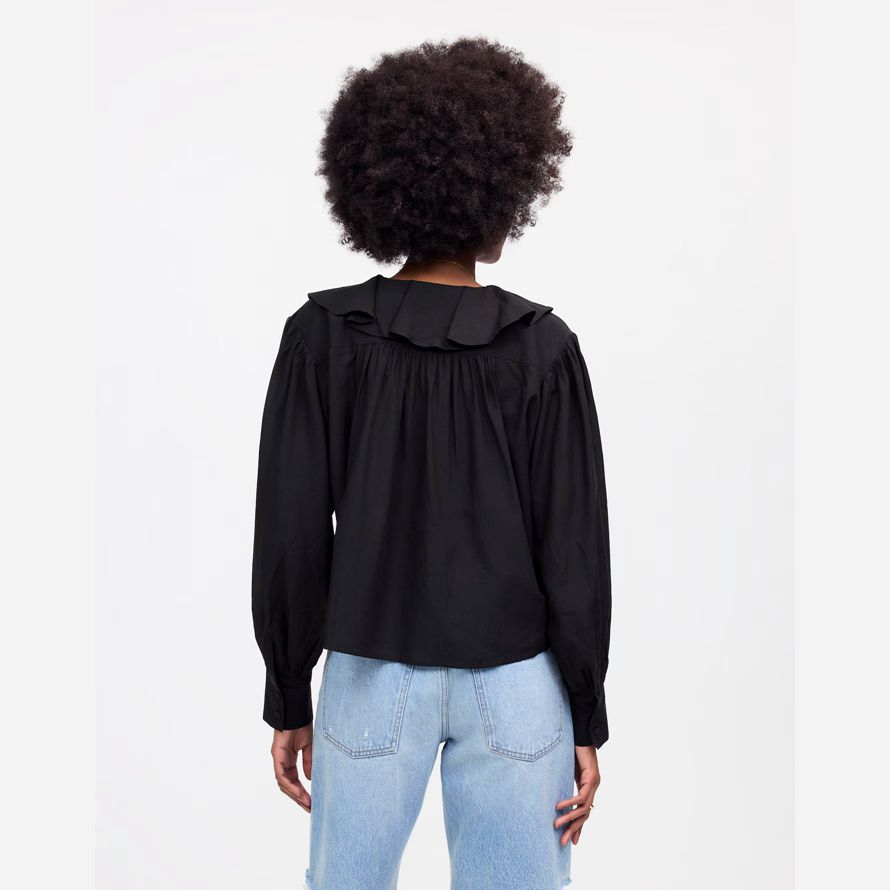 volants et de petits boutons recouverts pour un taux élevé, la sensation hors du temps. La froncé manches ajouter une touche de douceur, le rendant parfait pour le couplage avec un jean pour un look élégant sans effort.