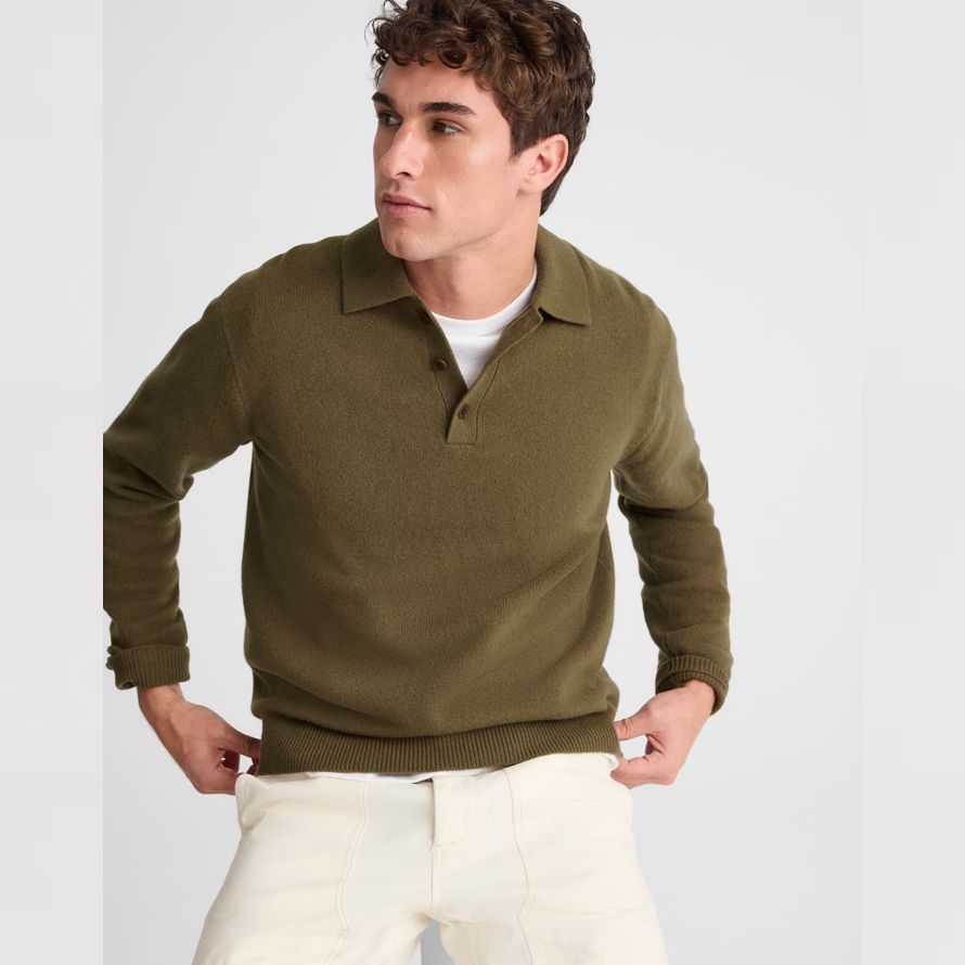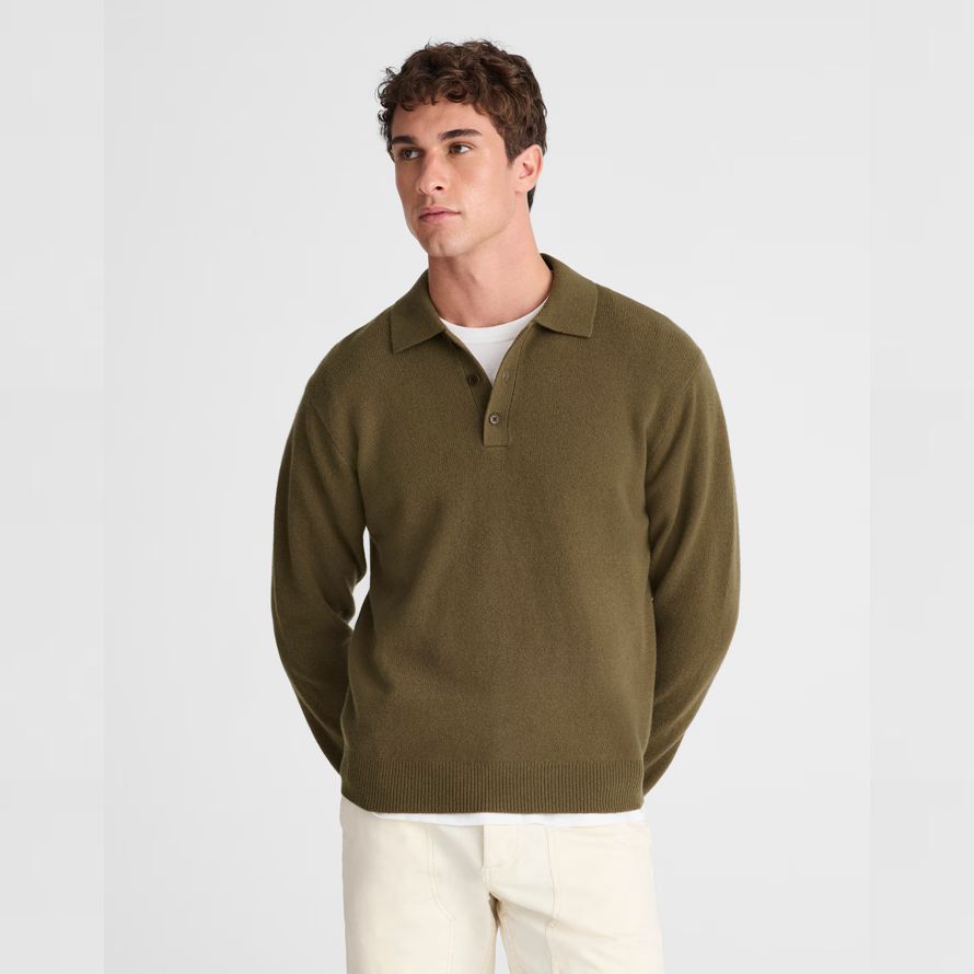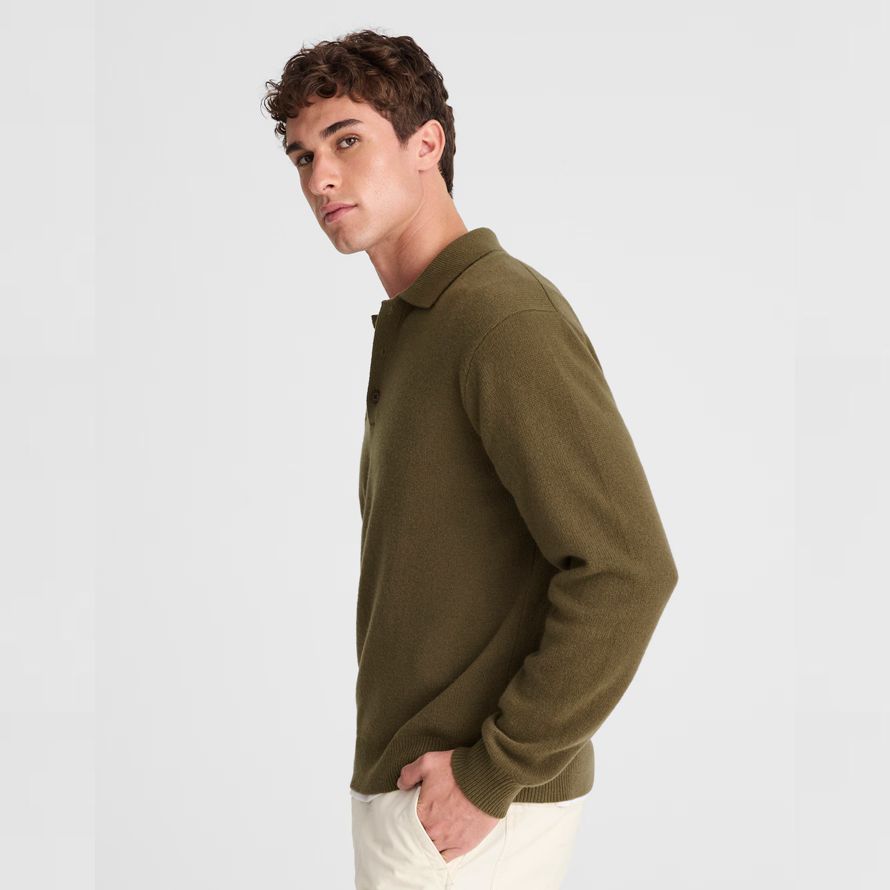 Olive Madewell Patrimoine Laine Mérinos Pull Homme Polo