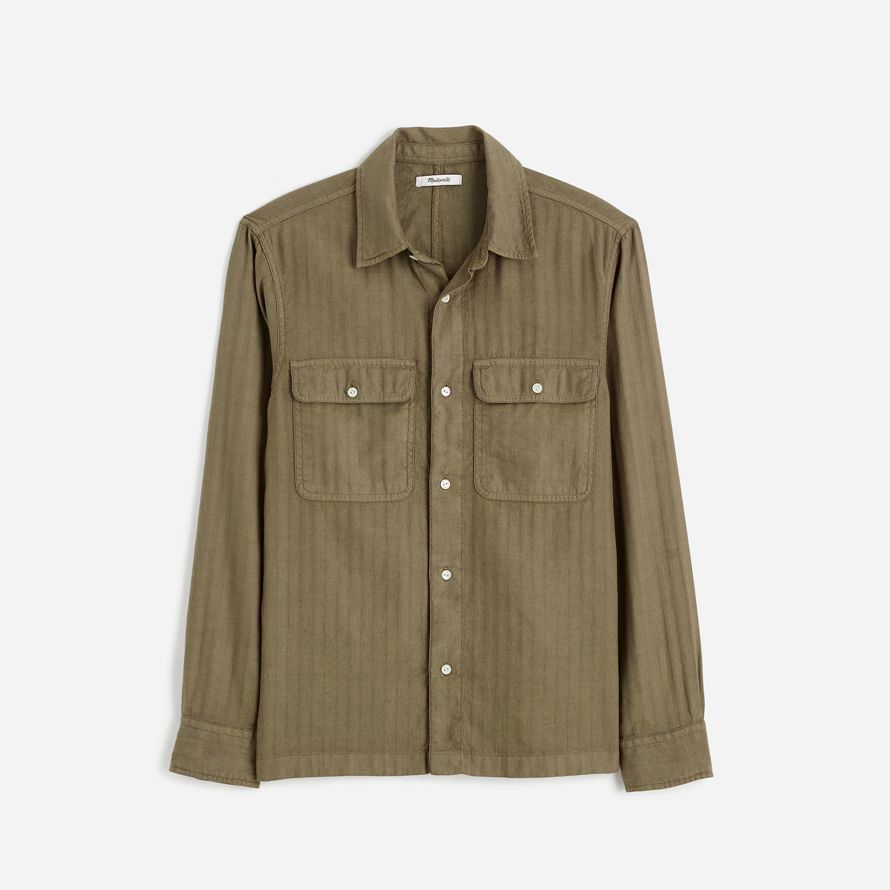deux poches à rabat à l’avant et une ligne droite à l’ourlet. Ce vêtement teint morceau est conçu pour ressembler vécu depuis le début.