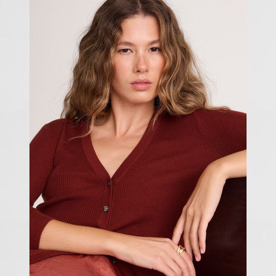 Conçu à partir d’un léger en laine mérinos, soie, mélange, ce bouton-avant cardigan dispose d’un profond décolleté en V. C’est facile, layerable pièce à ajouter à votre chandail de rotation.