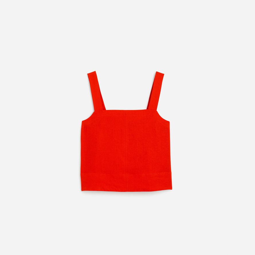 sangles, une encolure carrée et des surpiqûres contrastantes. Conçu pour être porté comme une partie d’un ensemble, il s’accorde parfaitement avec notre correspondant des pantalons ou des shorts pour une détente encore élevés de look.