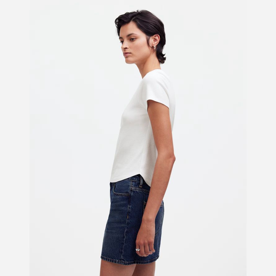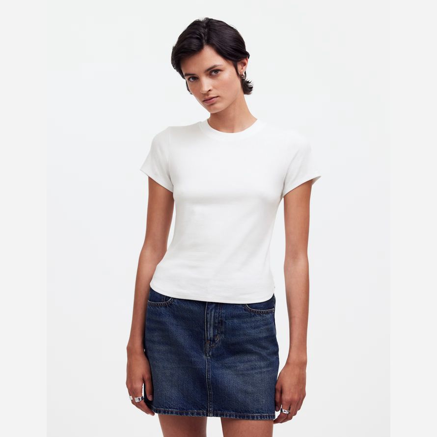 Slim fit.Longueur: conçu pour frapper entre le nombril et le haut de la hanche.La longueur du corps de haut point de l’épaule: 21 7/8″.95% coton/5% élasthanne.Laver à la Machine.Importés.