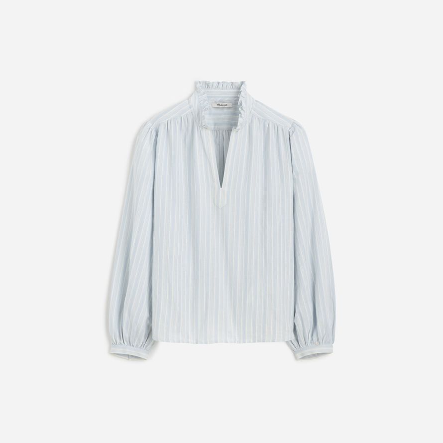 volants, splitneck col et de longues froncé manches. Un laid-back mais avec style, parfait quand il est associé avec le denim.
