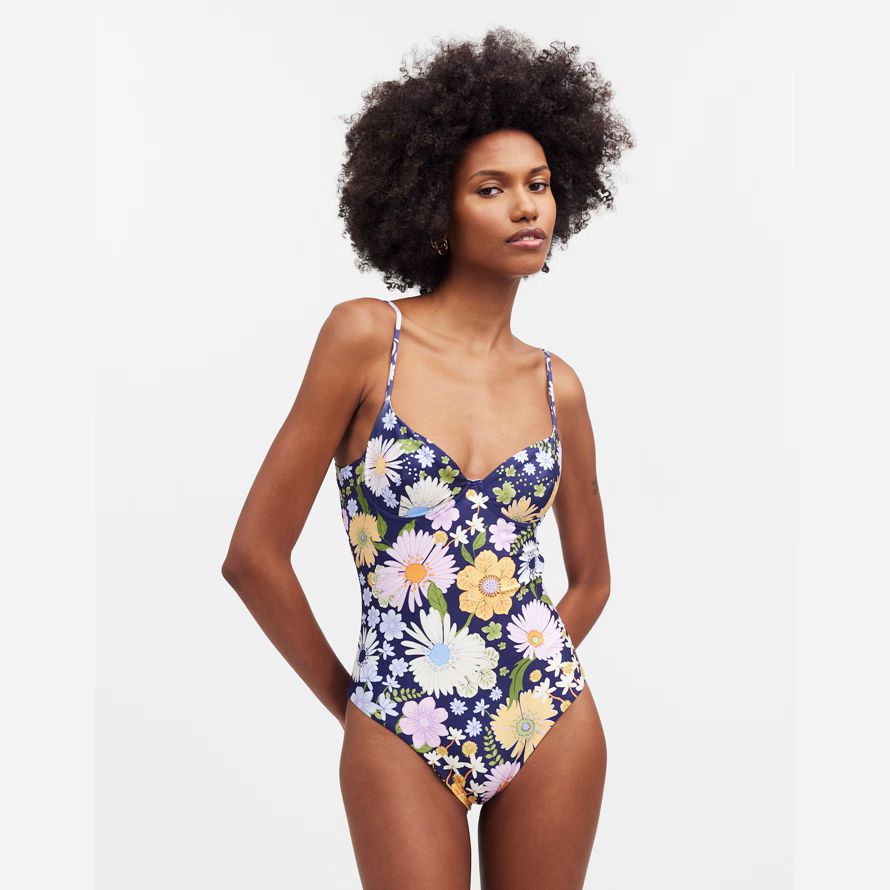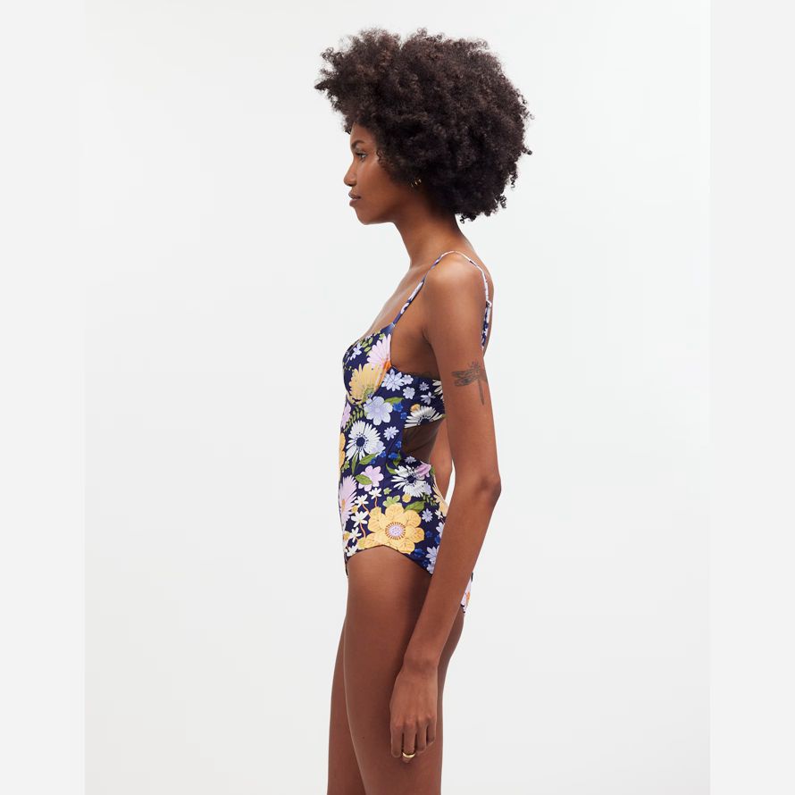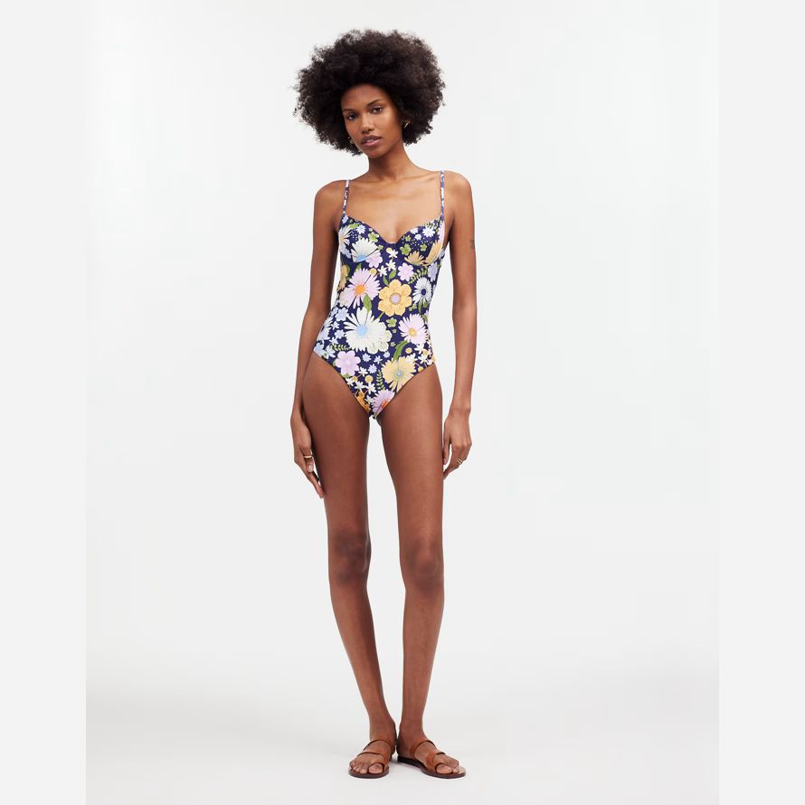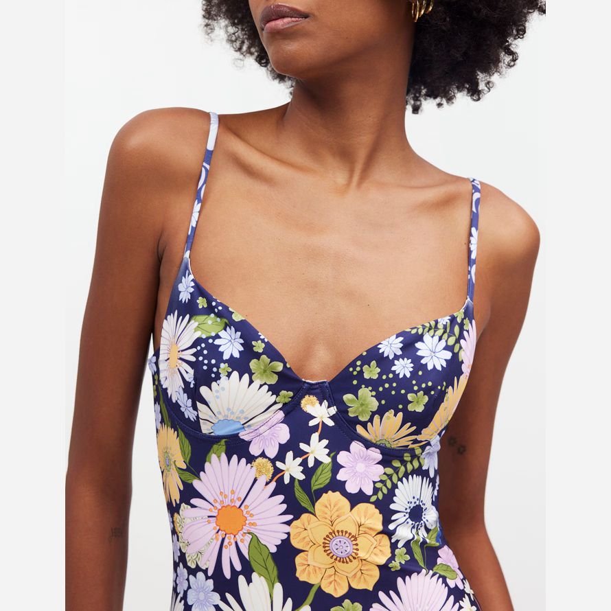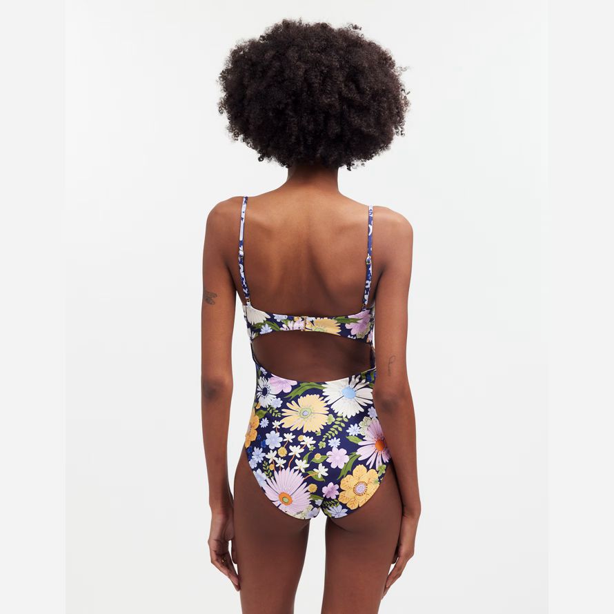 Bendita exclusif sur capsule mettant en vedette leurs impressions colorées et réfléchie des dessins. À venir, dans un quartier animé imprimé floral, d’une seule pièce de maillot de bain dispose d’un sexy décolleté sweetheart et est coupé haut sur la jambe.