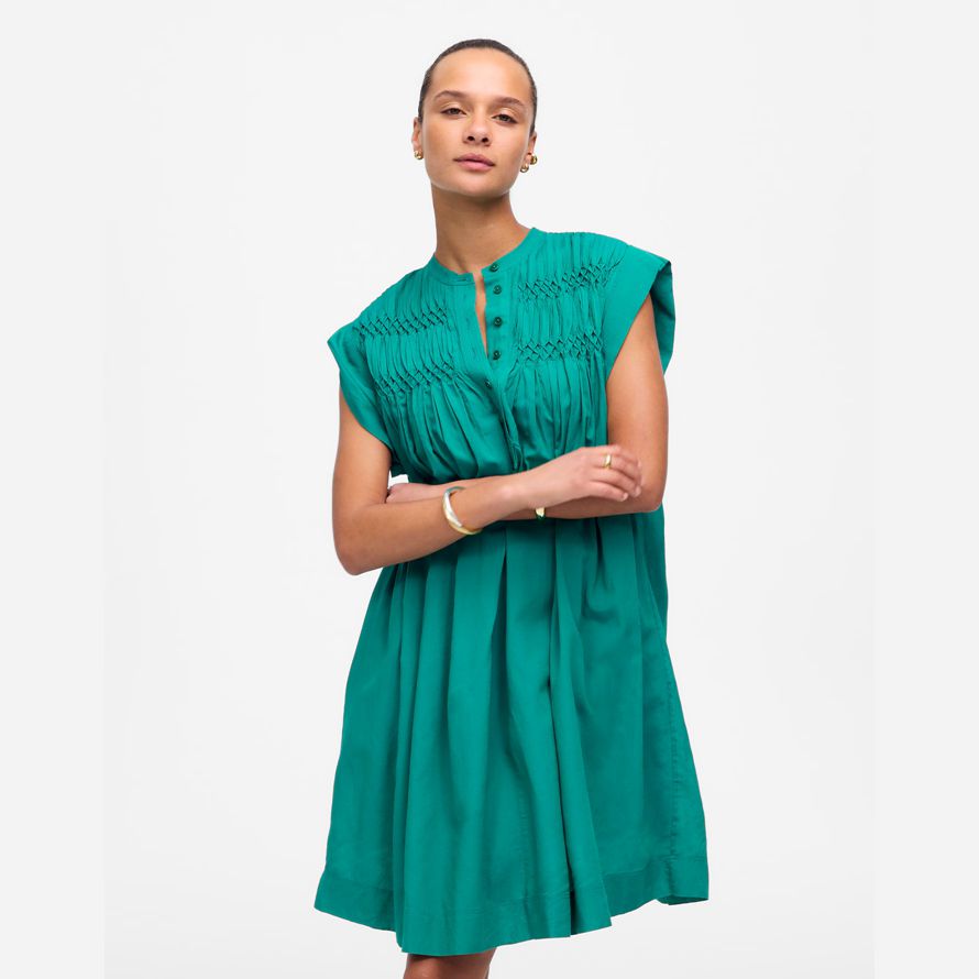 détails spéciaux comme brodé virement de bord et un front plissé joug. Fabriqué à partir d’un léger voile de coton mélange et entièrement doublée avec un glissement, l’essayer, couplé avec des sandales ou des espadrilles.