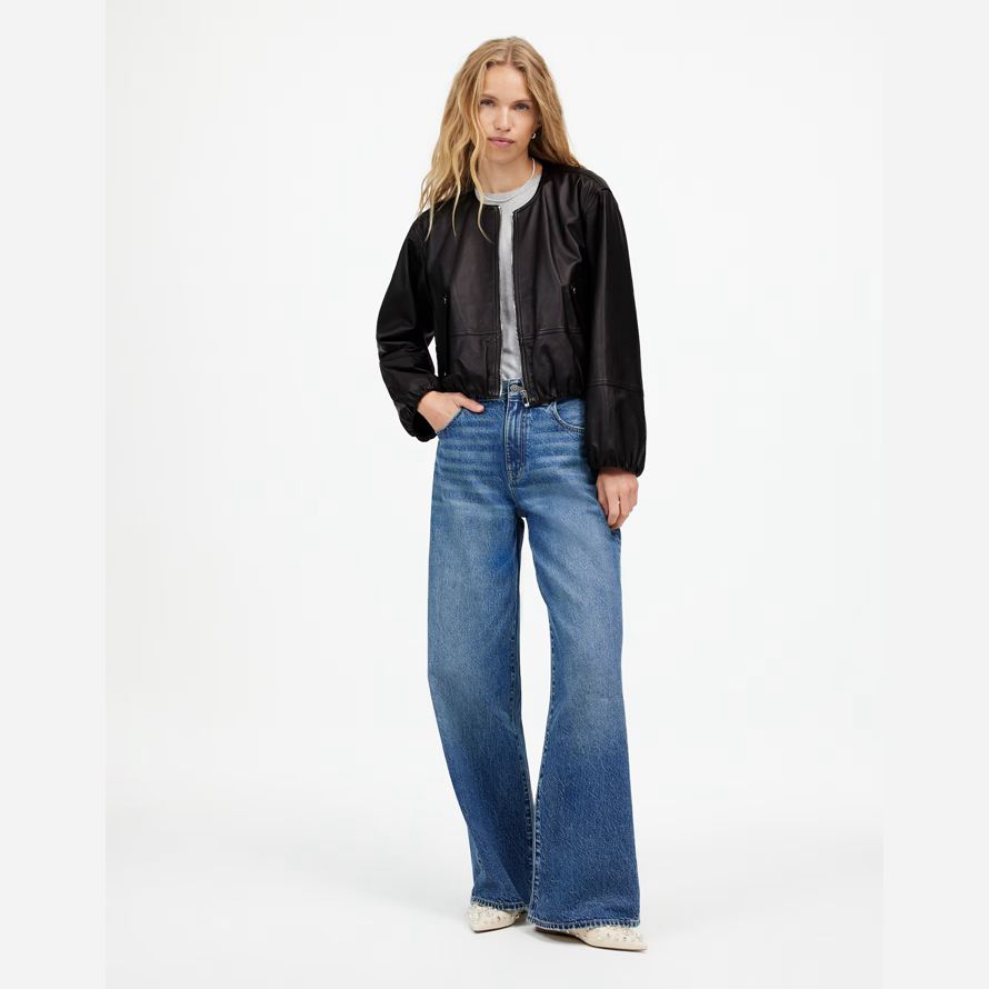 Womens Madewell Bulle-Manche Veste En Cuir Noir