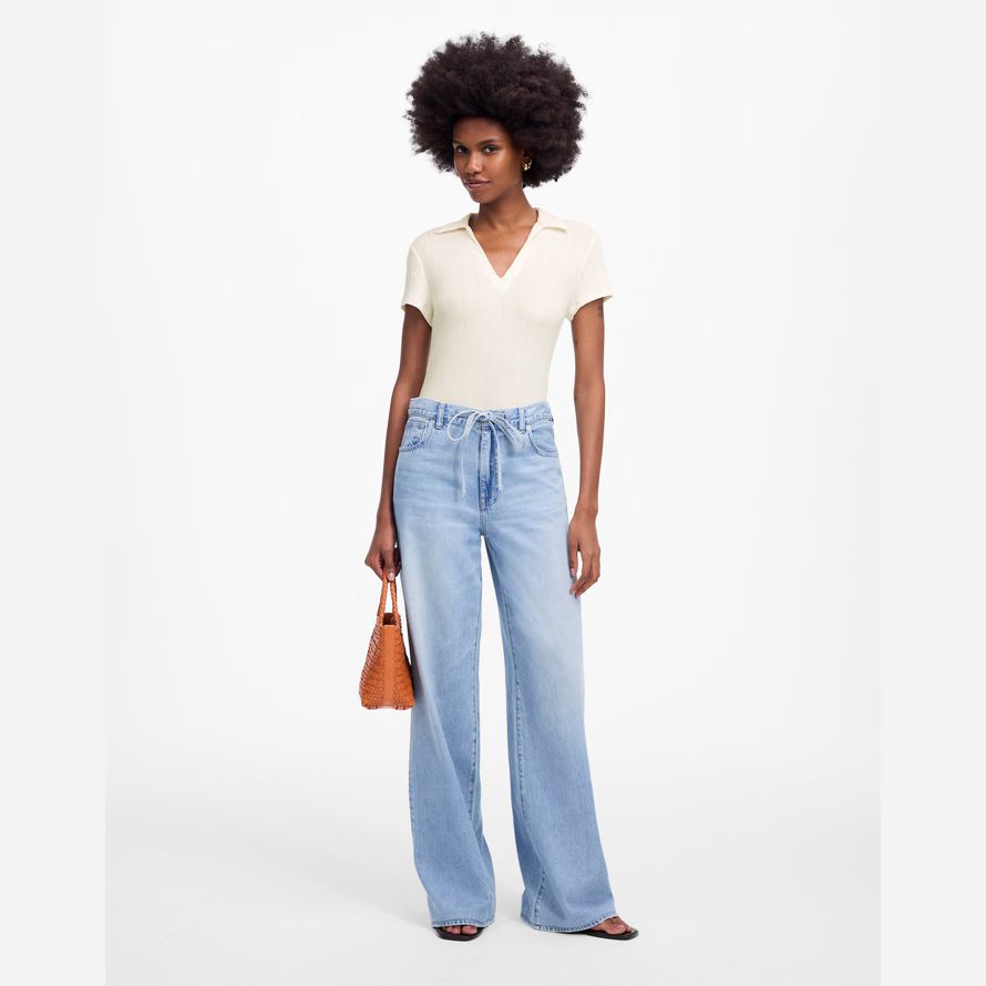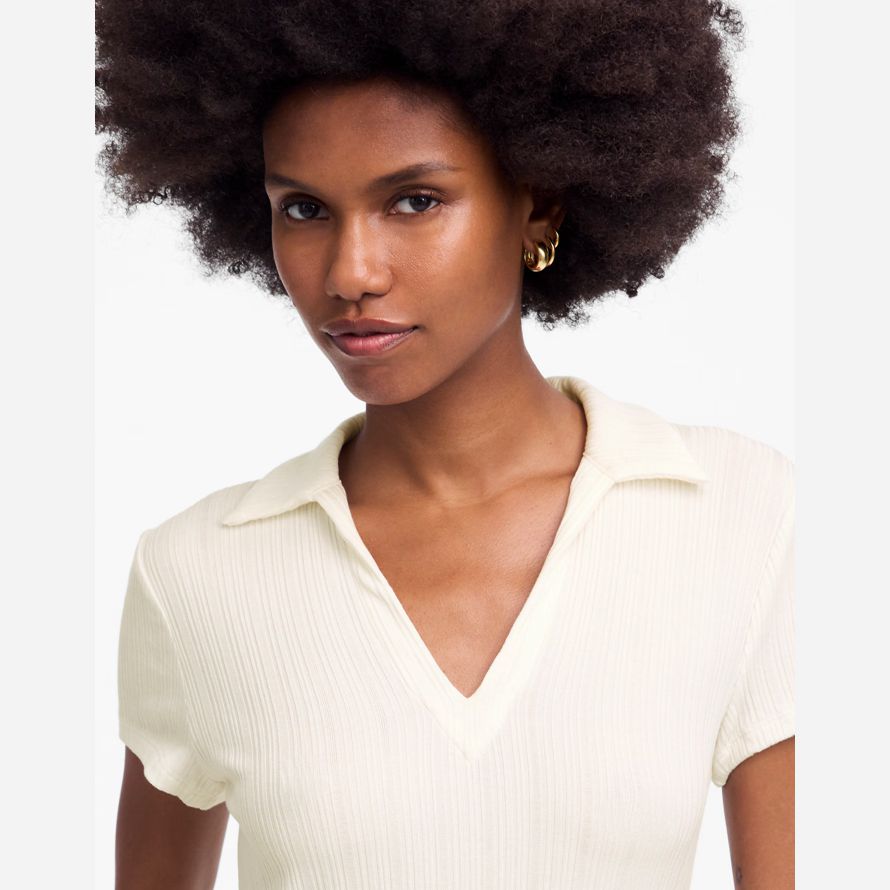 Womens Madewell Côtelée Col Polo T-Shirts À La Crème