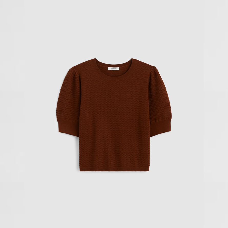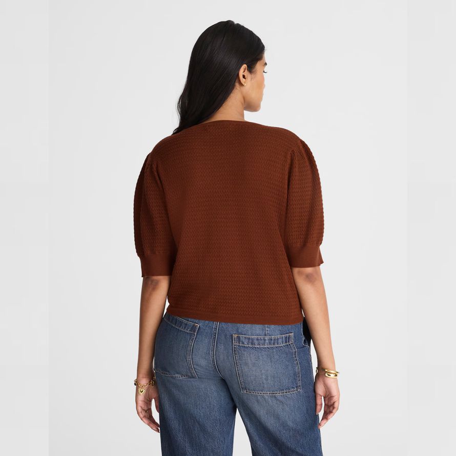Coupe décontractée.Longueur: conçu pour frapper entre le nombril et le haut de la hanche.La longueur du corps de haut point de l’épaule: 21 1/4″.75% laine mérinos/25% soie.Nettoyage à sec.Importés.