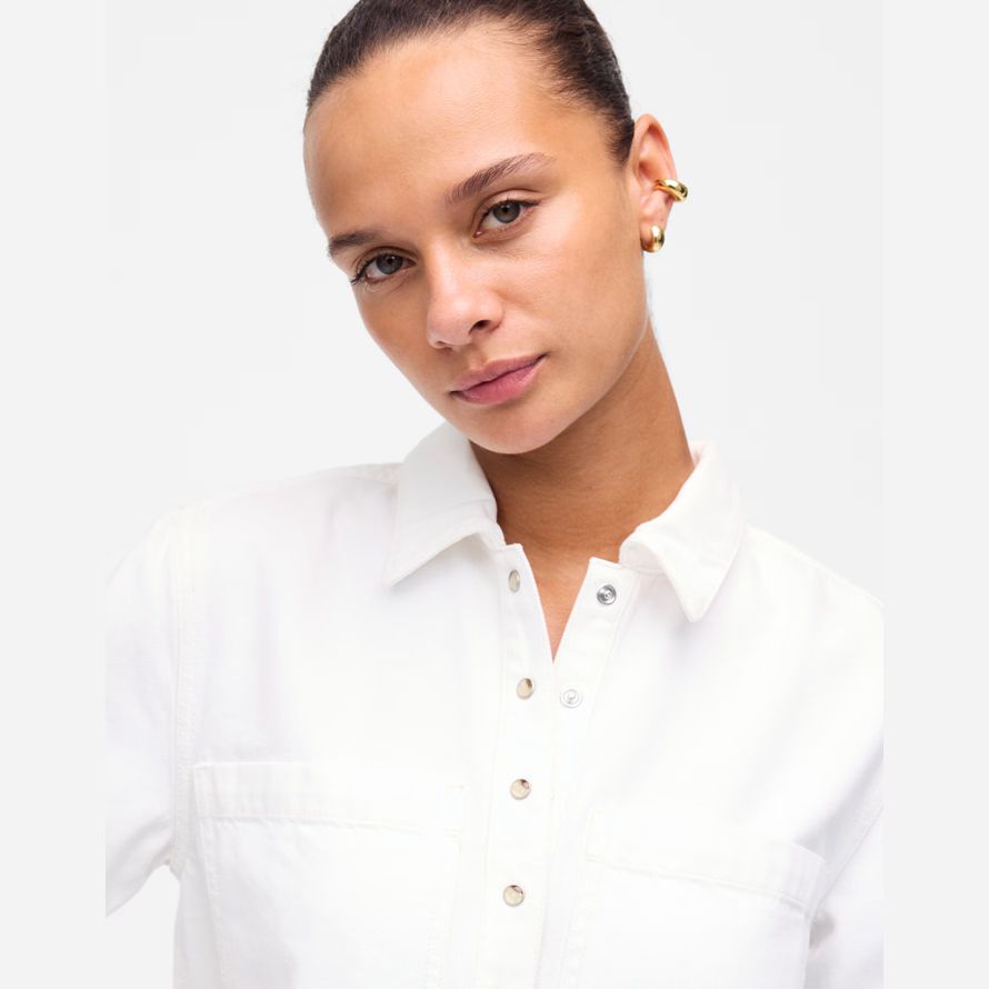 patte de boutonnage avec l’ouest s’enclenche, poches de poitrine et ourlet large. D’été de style qui est parfait pour le couplage avec des sandales ou des espadrilles.