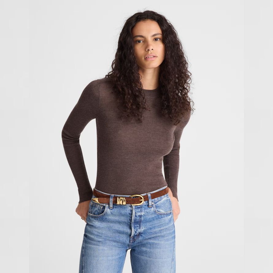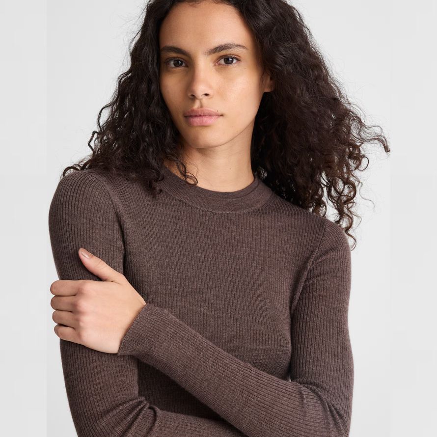 Slim fit.Longueur de la hanche: conçu pour frapper au haut de la hanche ou au-dessous; tuckable.La longueur du corps de haut point de l’épaule: 23 1/2″.Corps: 75% laine mérinos/25% soie.Collier: 62% laine mérinos/20% soie/16% polyamide/2% élasthanne.Nettoyage à sec.Importés.
