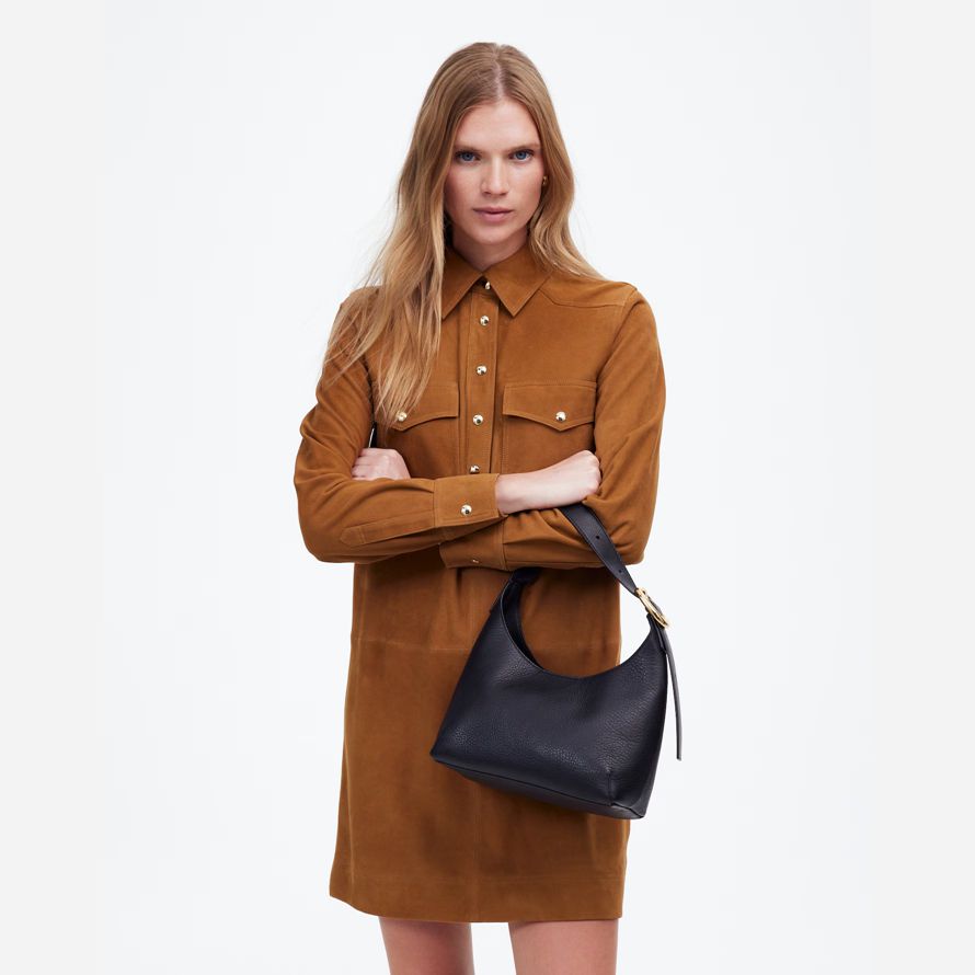 100% cuir.Doublure: 100% coton.Bien faire: cuir provenant d’une tannerie qui a été certifié par le Cuir de Groupe de Travail (LWG), une organisation qui travaille à la promotion de pratiques environnementales durables dans l’industrie du cuir.Fermeture magnétique.Intérieur téléphone fente.8 1/4″ poignée drop.6 1/4″H x 9″W en haut, 9 2/3″W x 3 3/4″D à la base .Importés.