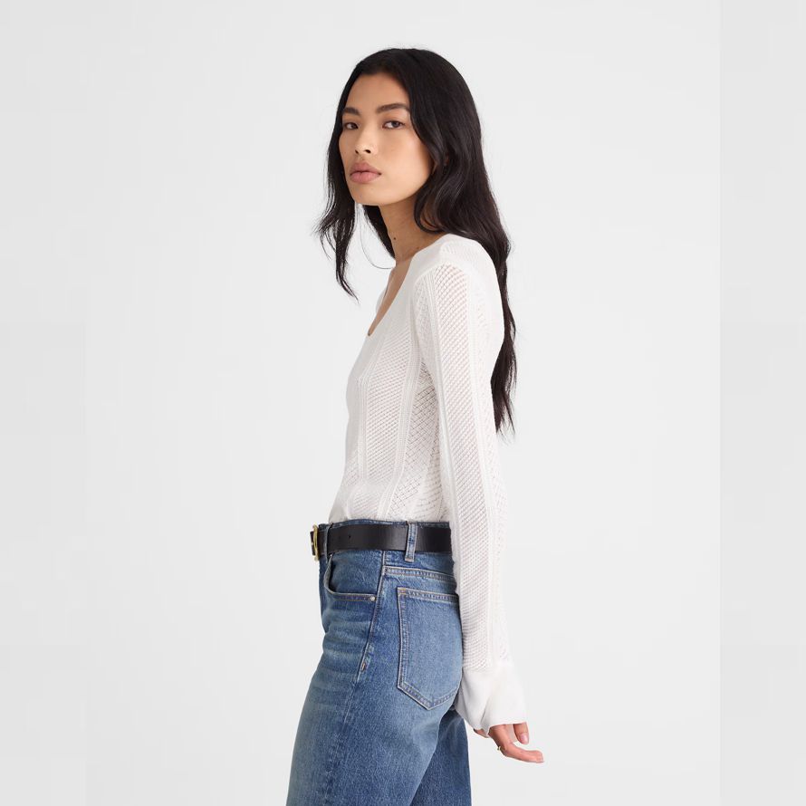 Venir dans notre douce Signature de Tricot, cette dentelle couture pull dispose d’une encolure dégagée et flatteur slim fit. C’est l’accord parfait avec votre favori haute-tailleurs pantalons.