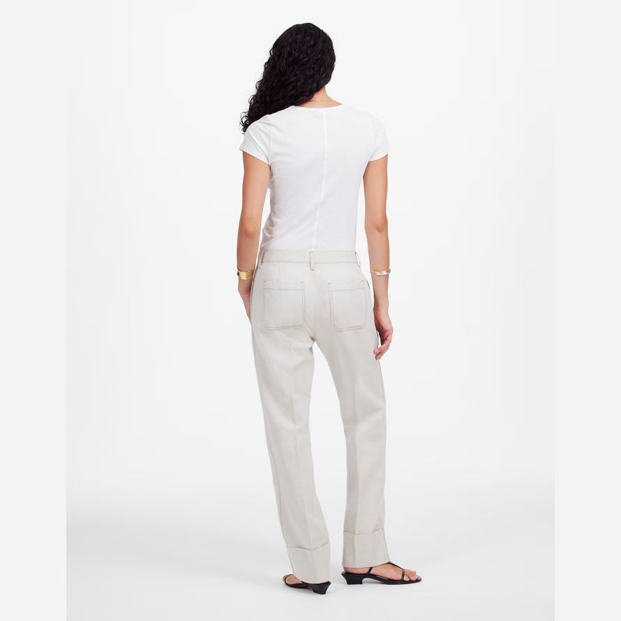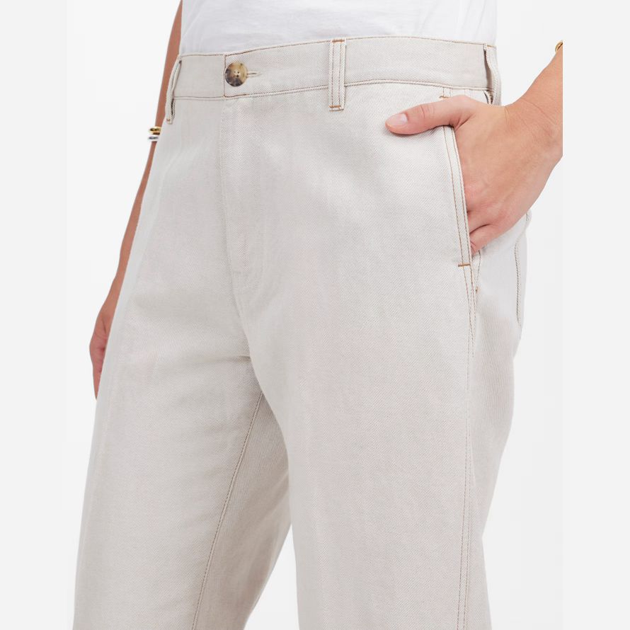 pleine longueur entrejambe. Facile, ce pantalon est fabriqué à partir d’un coton-lin mélange sergé et dispose d’un revers ourlet.
