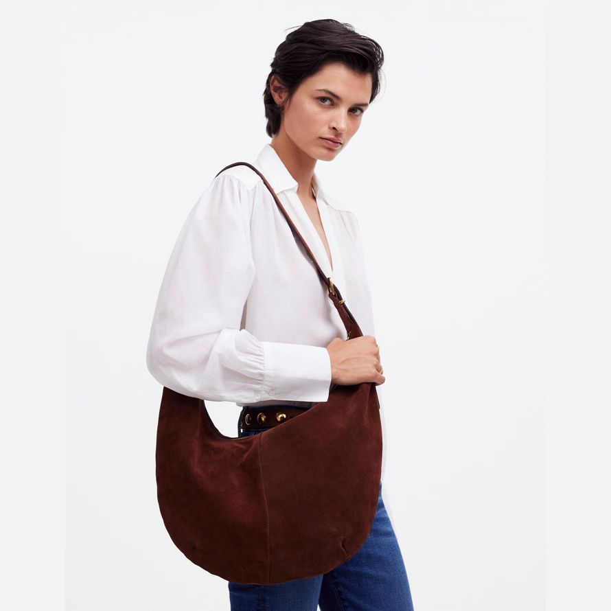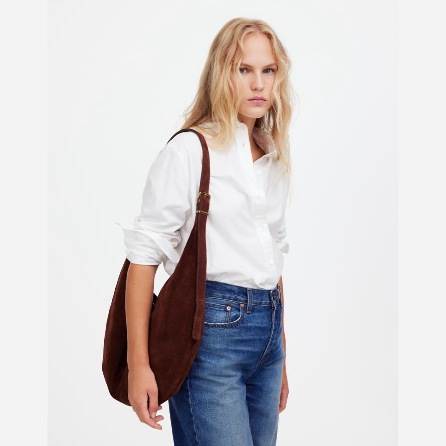 tranquillement luxe. Avec une sécurité de haut fermeture à glissière et une poche intérieure, ce daim slouchy sac est de taille parfaite pour contenir un iPad, une bouteille d’eau, de téléphone, porte-monnaie et des clésラde plus, il dispose d’une sangle réglable qui peut être porté bandoulière ou sur l’épaule. C’est tellement bon, qu’il est Essentiel.
